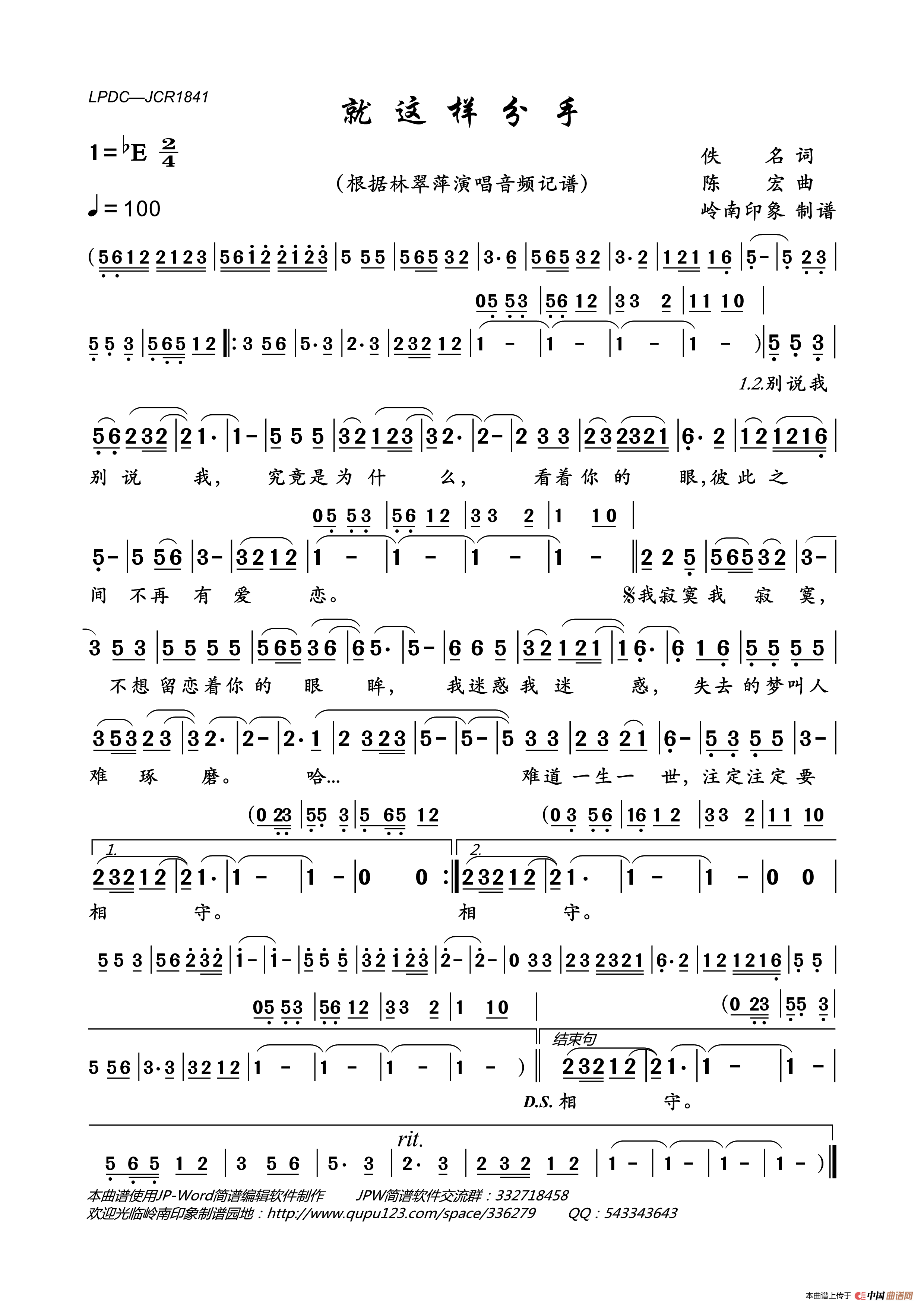 《就这样分手》文本歌词