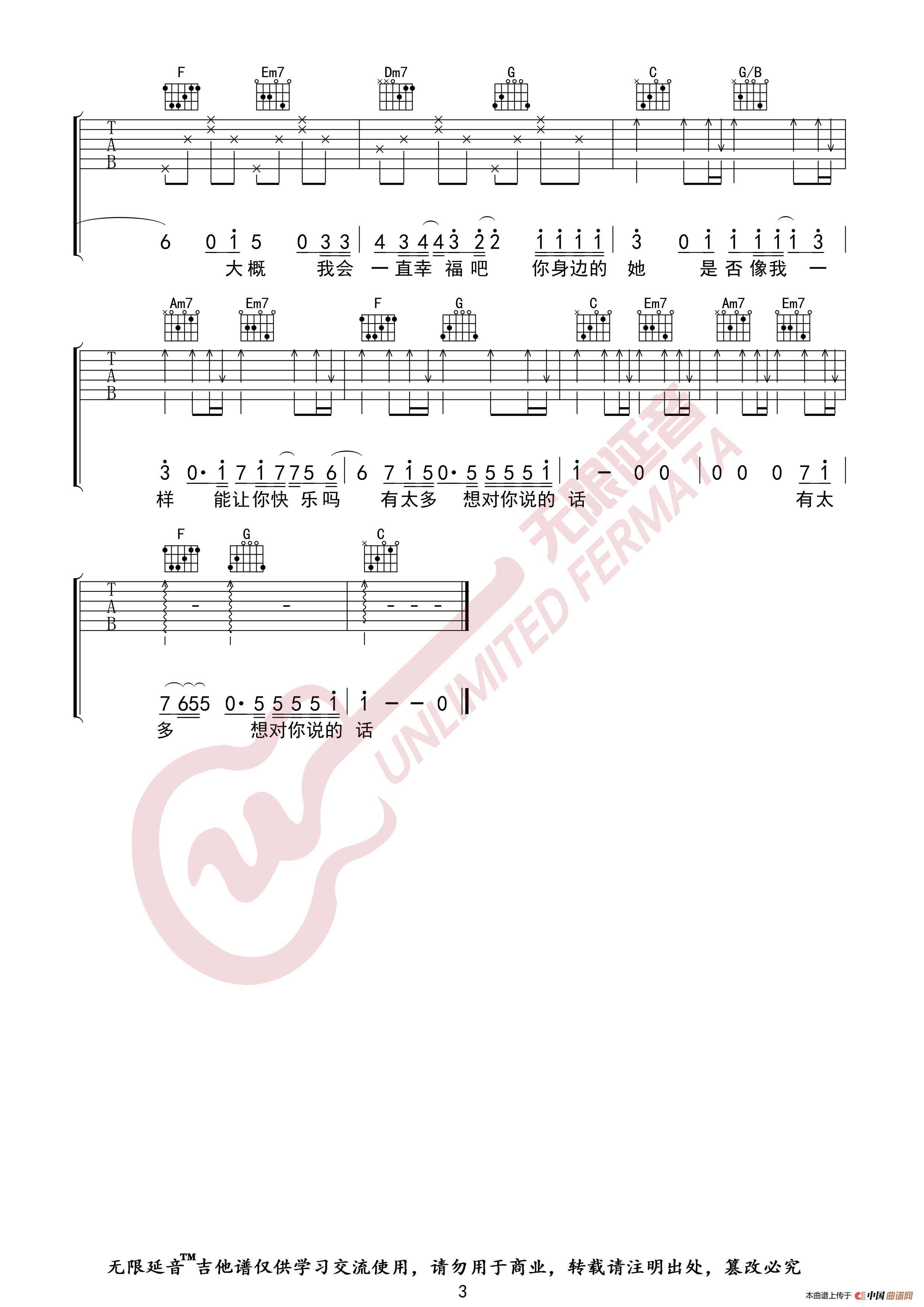 胡66 后来遇见他 吉他谱(无限延音编配)