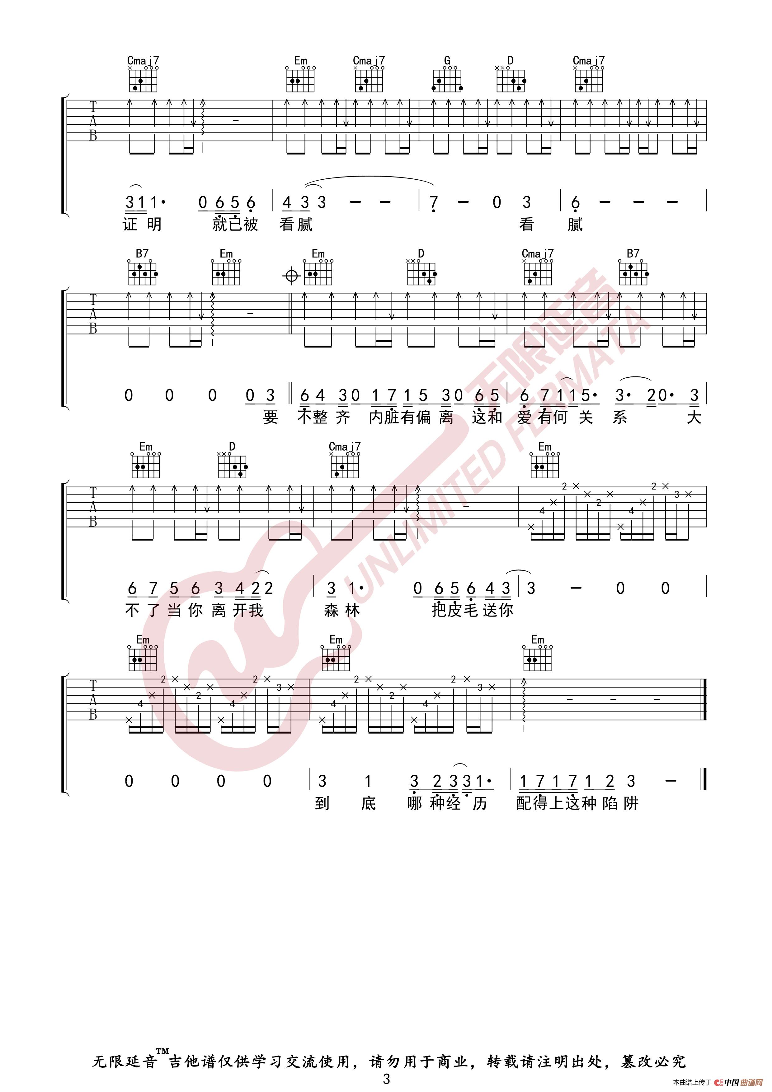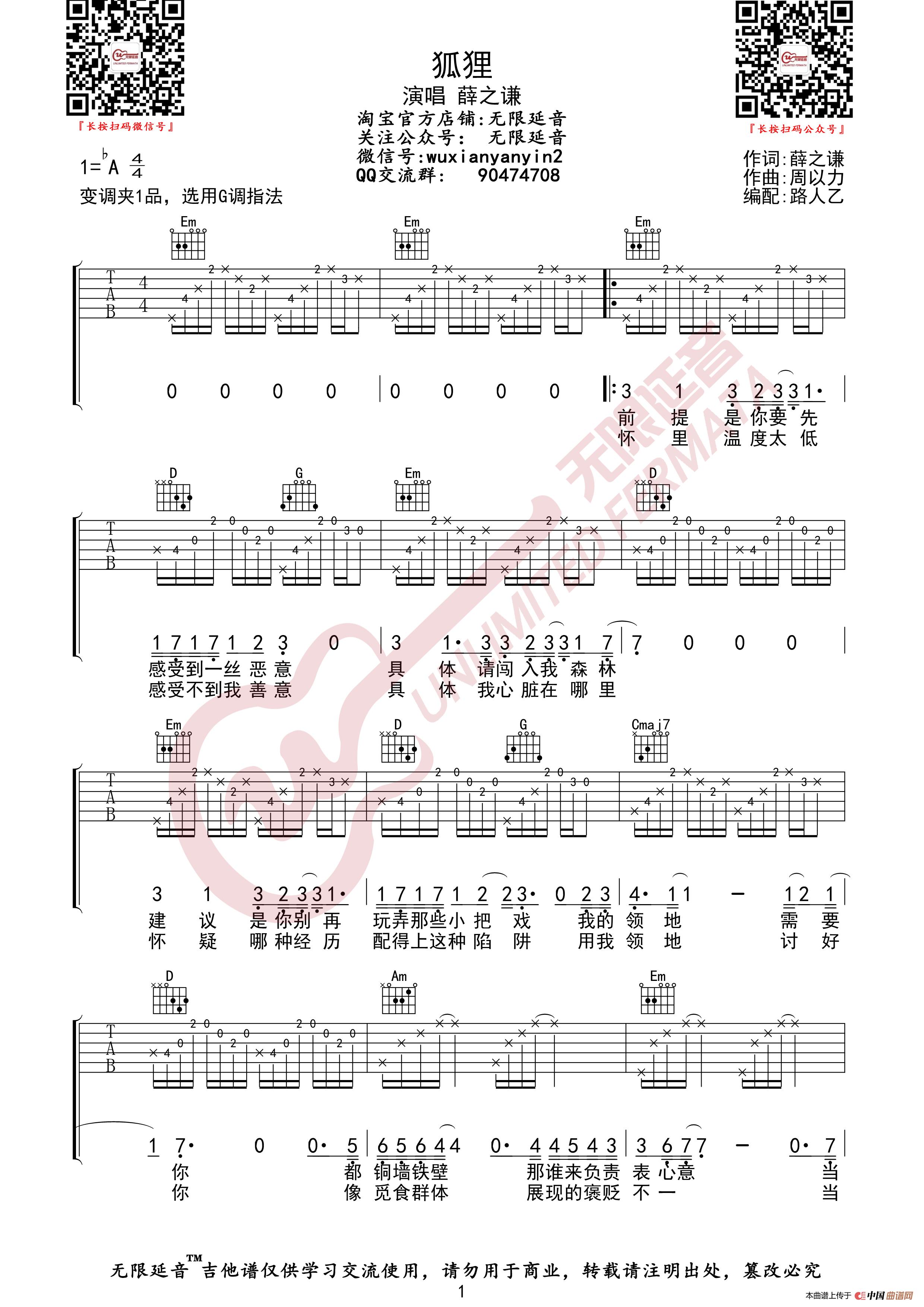 薛之谦 狐狸 吉他谱(无限延音编配)