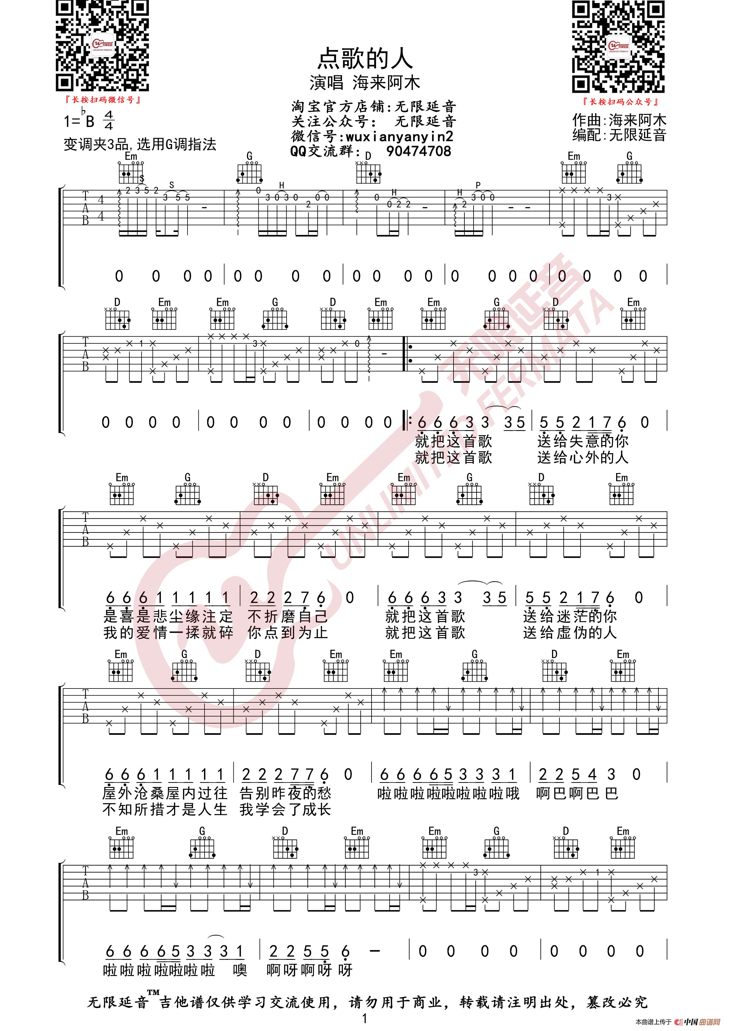 还来阿木 点歌的人 吉他谱(无限延音编配)