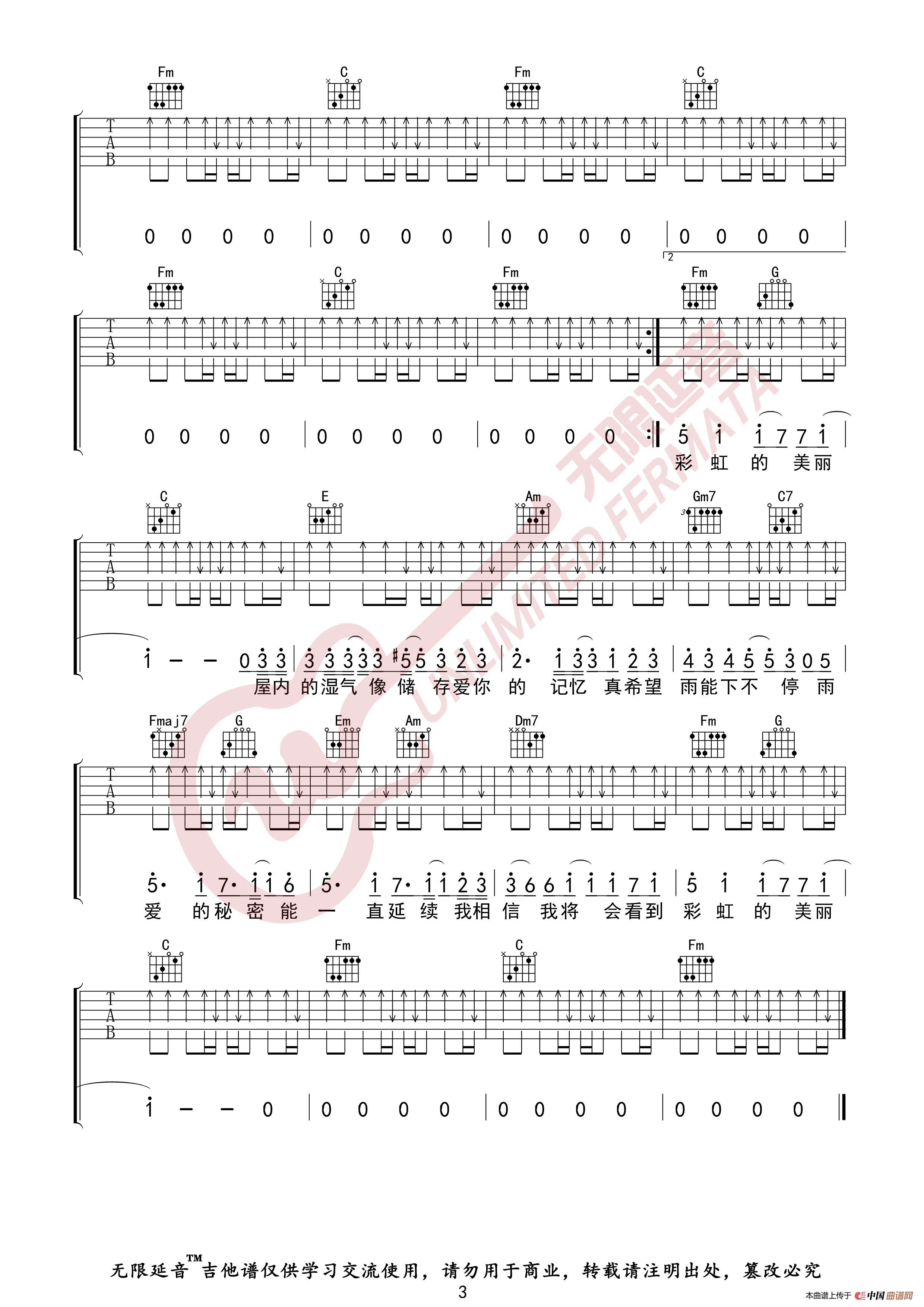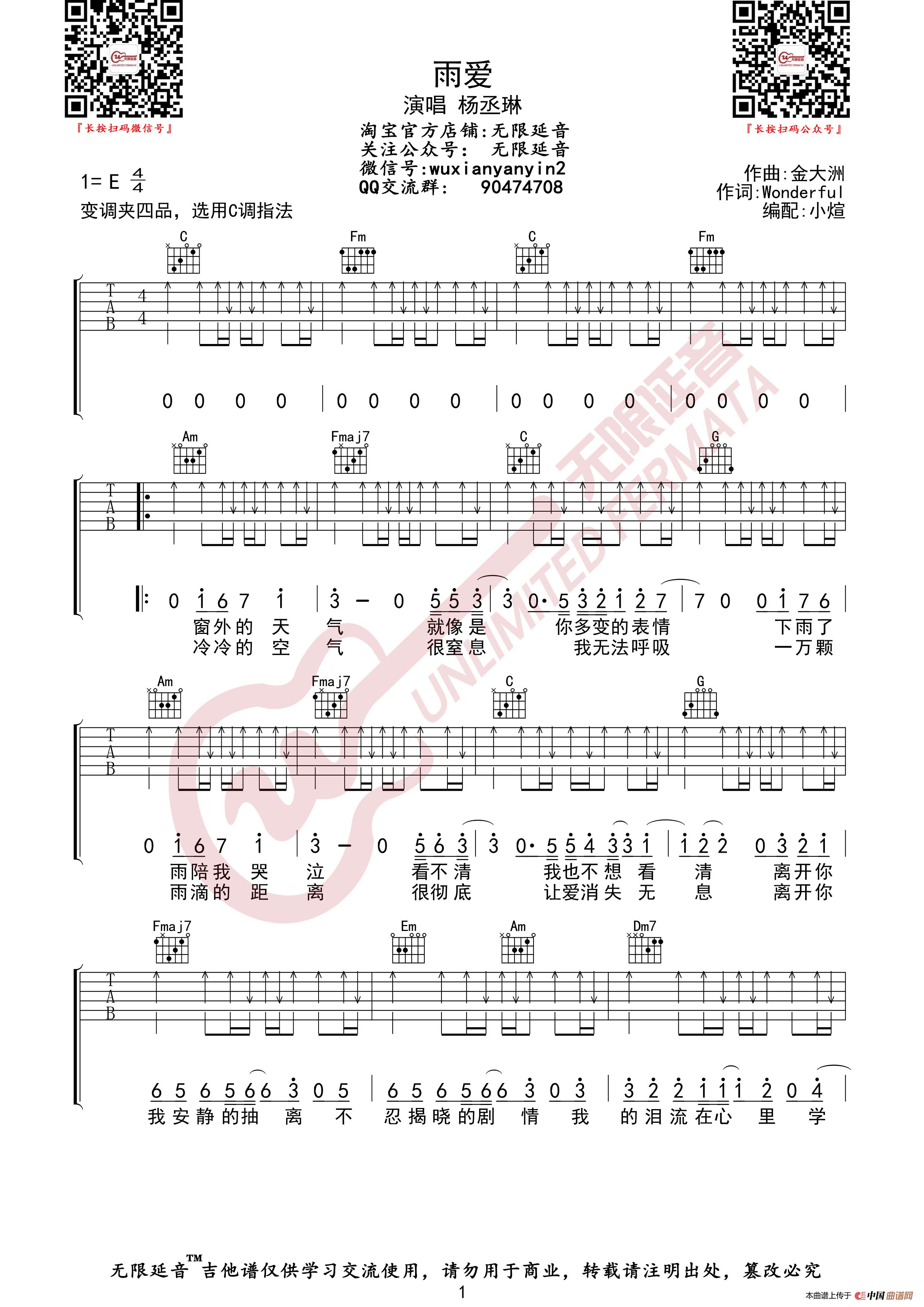 杨丞琳 雨爱 吉他谱(无限延音编配)