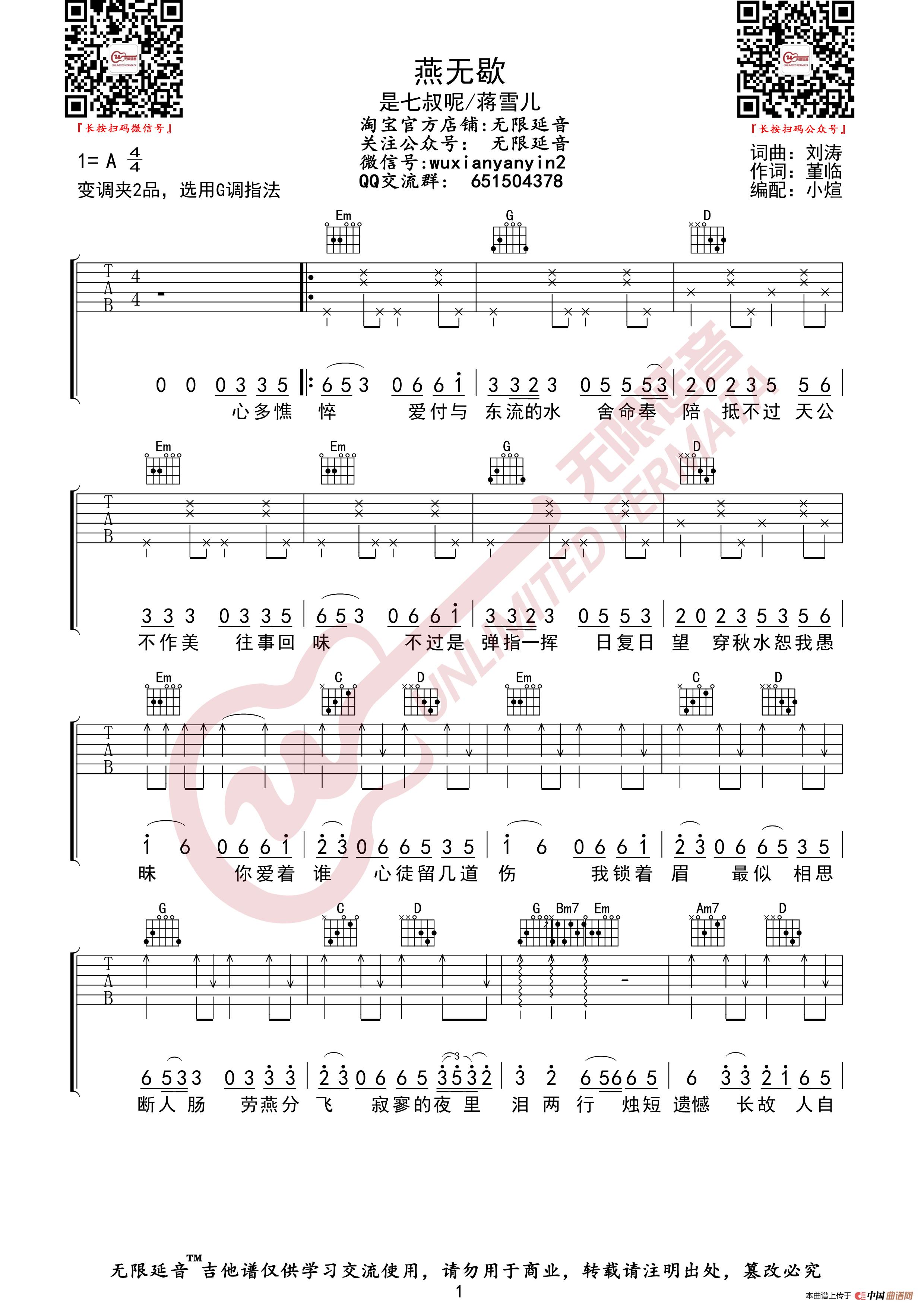 是七叔呢 蒋雪儿 燕无歇 吉他谱(无限延音编配)