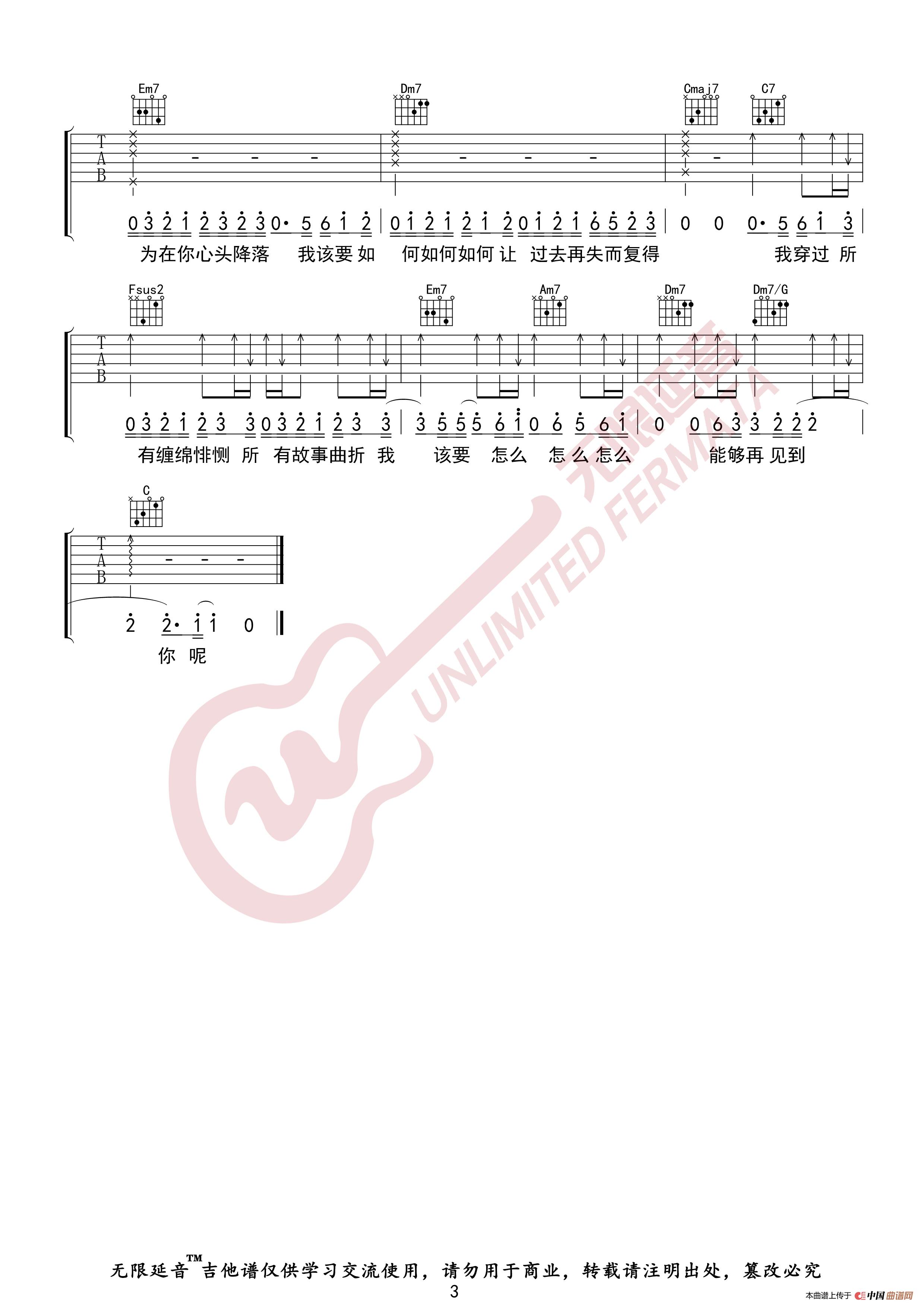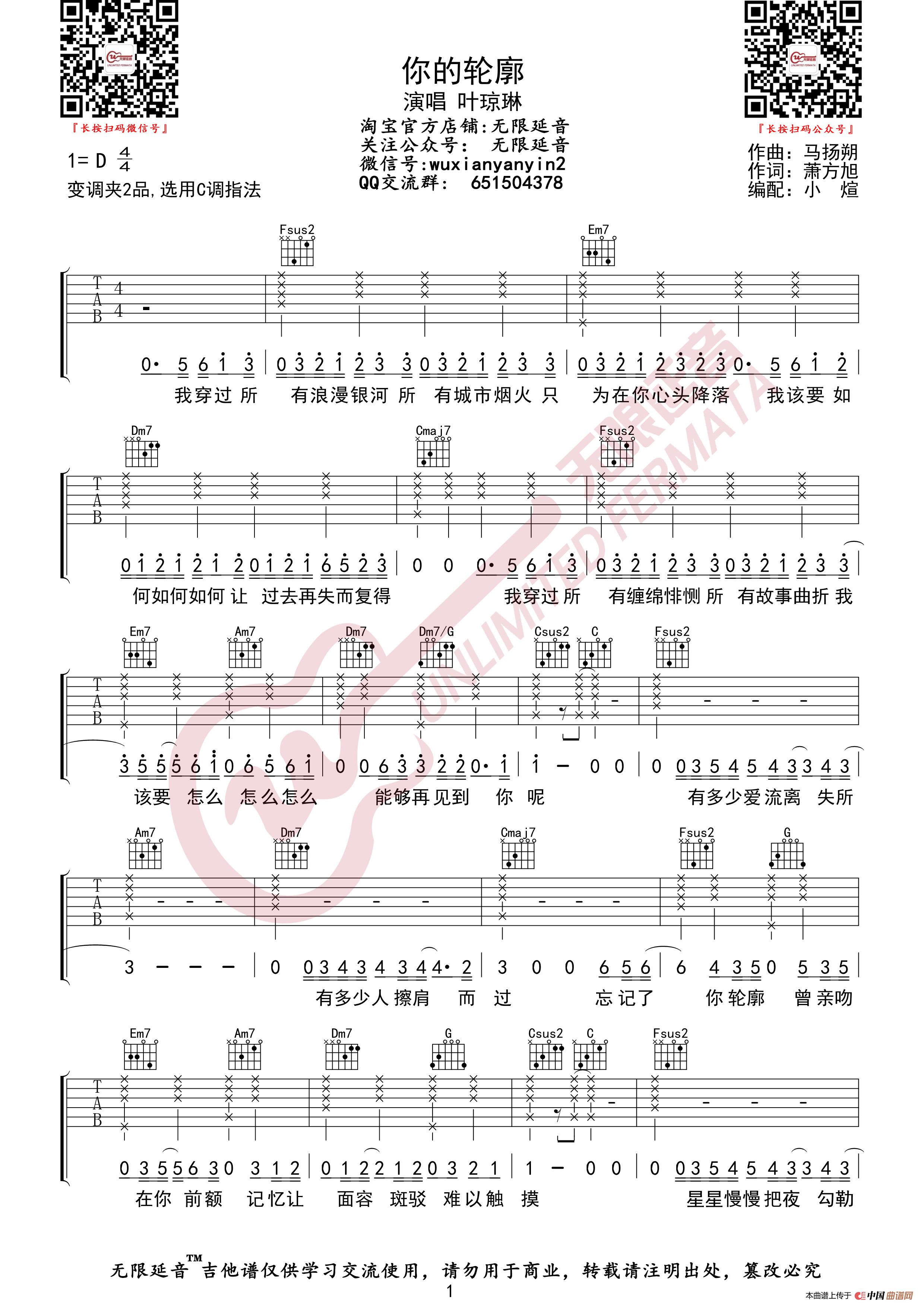 叶琼琳 你的轮廓 吉他谱(无限延音编配)