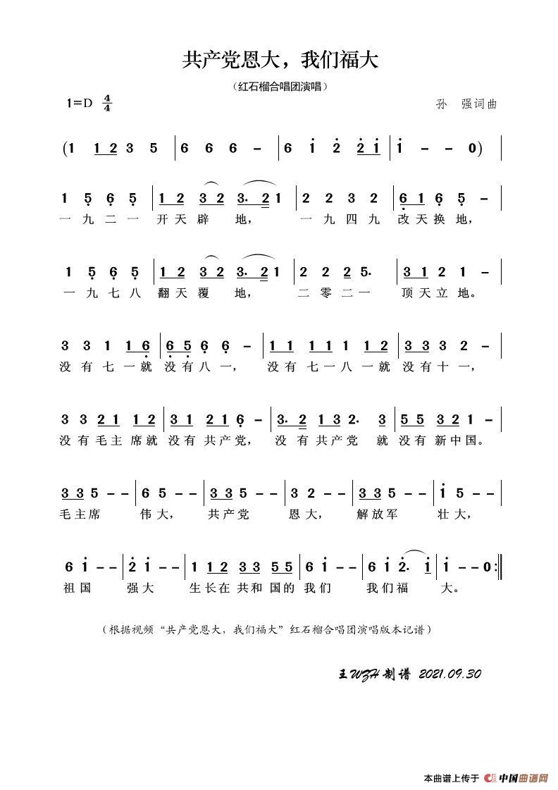 关于《共产党恩大,我们福大》曲谱的评论