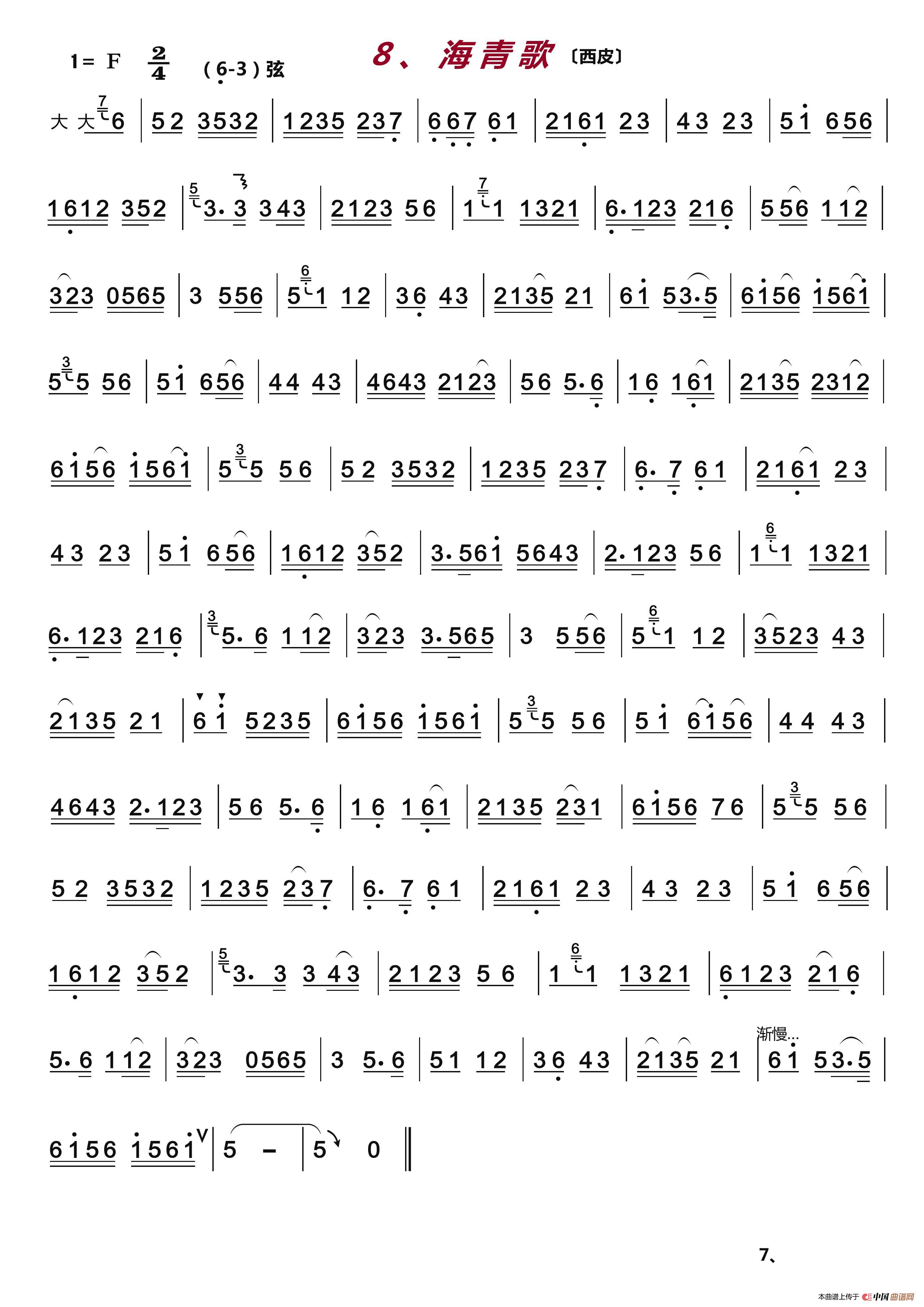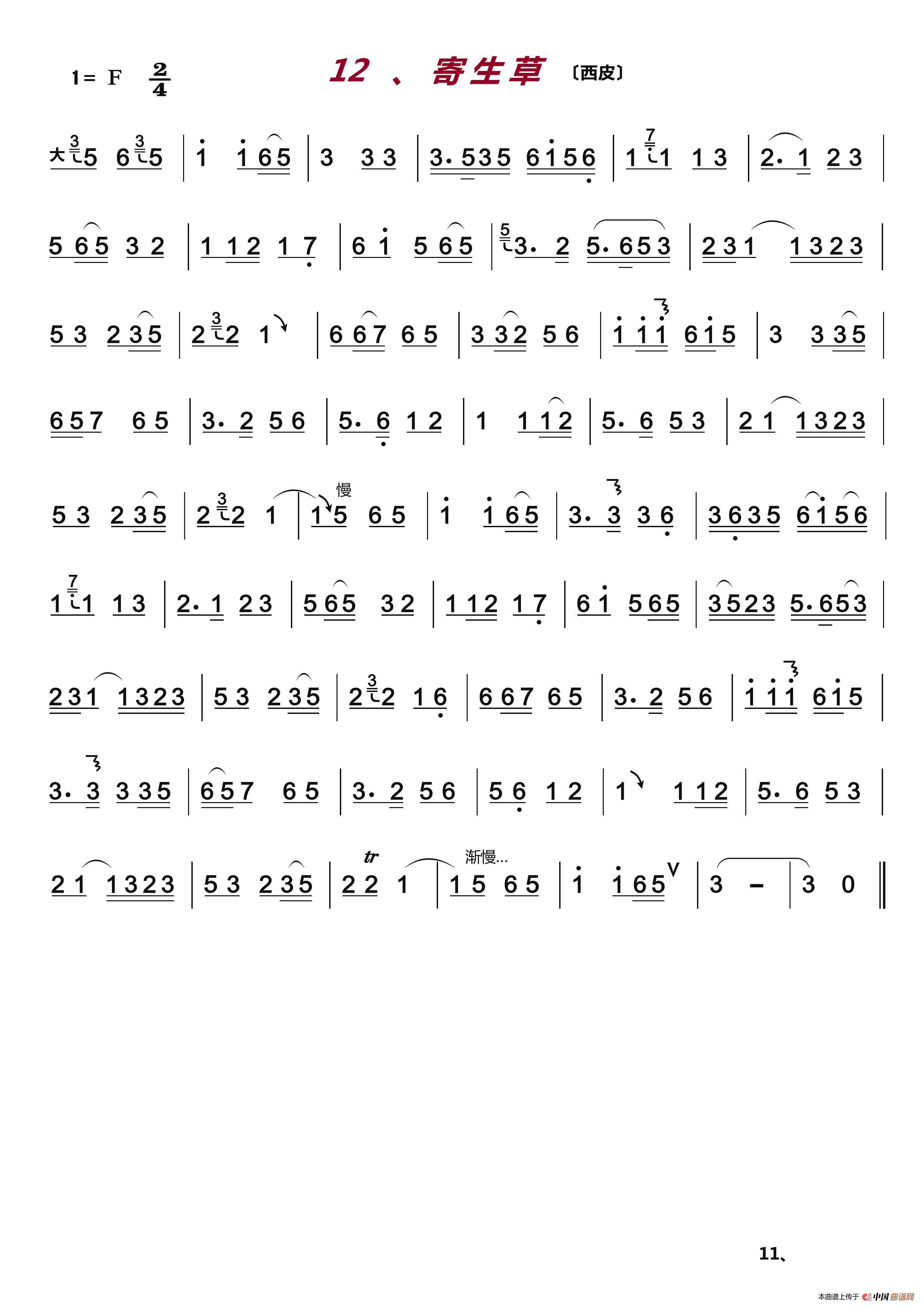 提示:在曲谱图片上单击右键,选择"图片另存为..."即可将曲谱保存到您的电脑中,打印时候可将图片插入到WORD中,调整合适大小打印即可。
