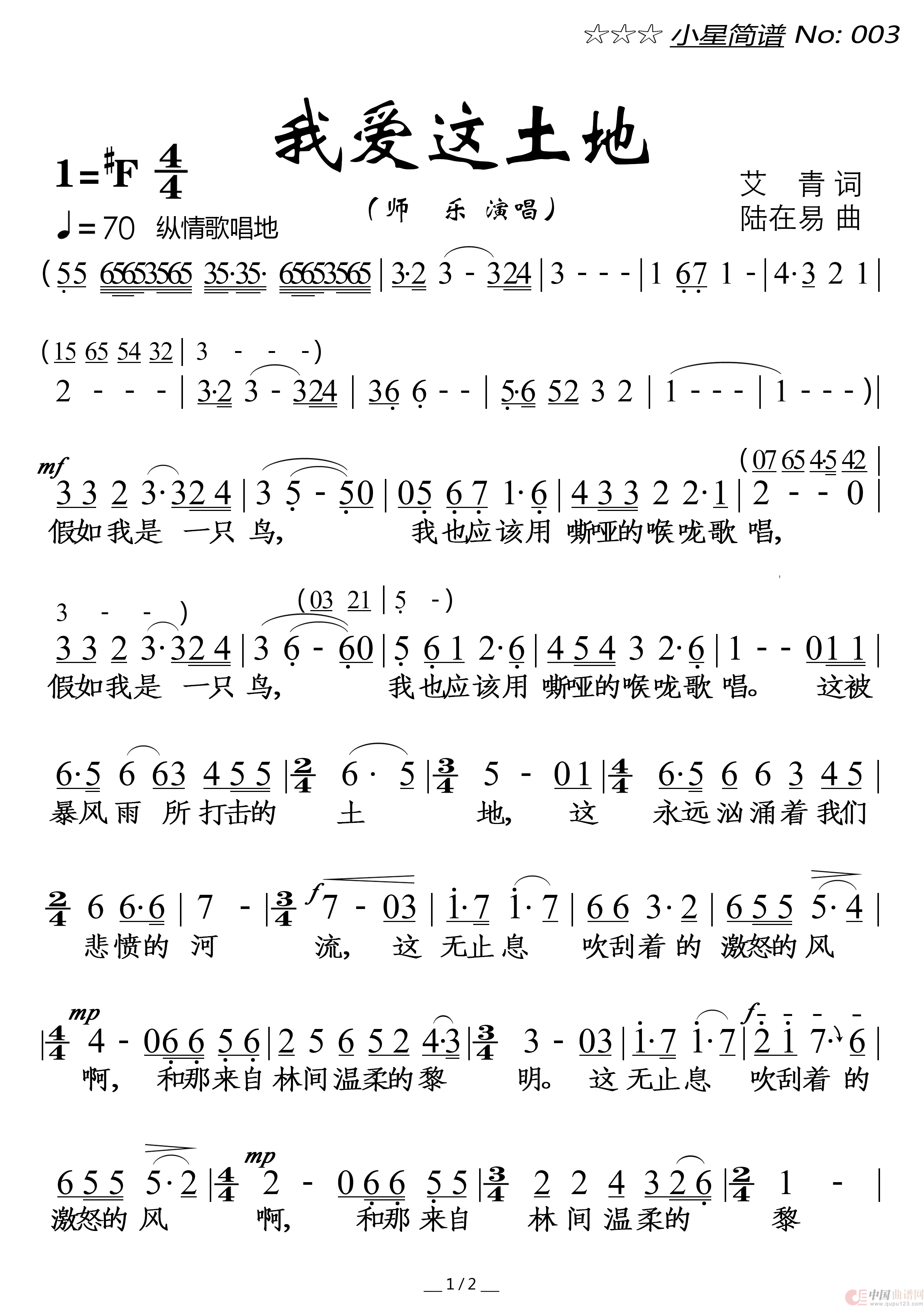 关于《我爱这土地》曲谱的评论