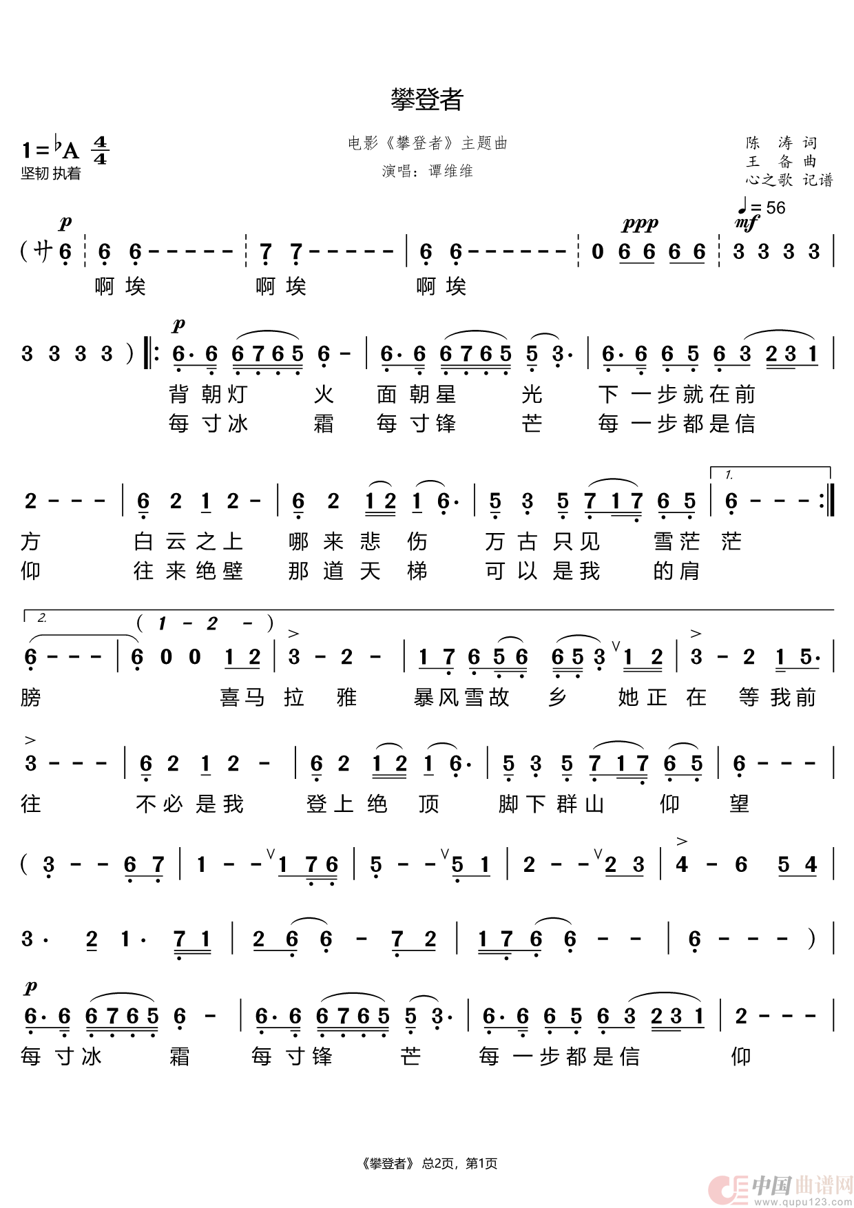 关于《攀登者》曲谱的评论