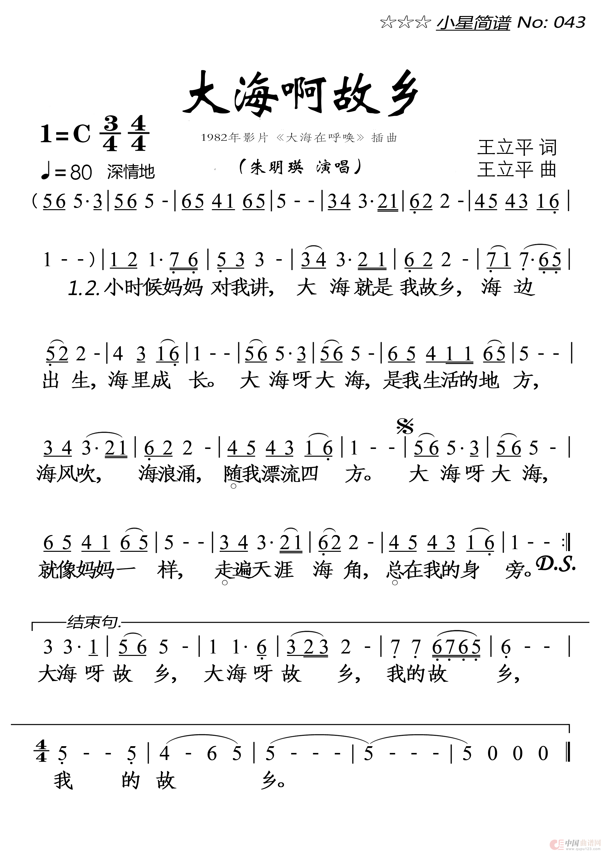 关于《大海啊故乡》曲谱的评论