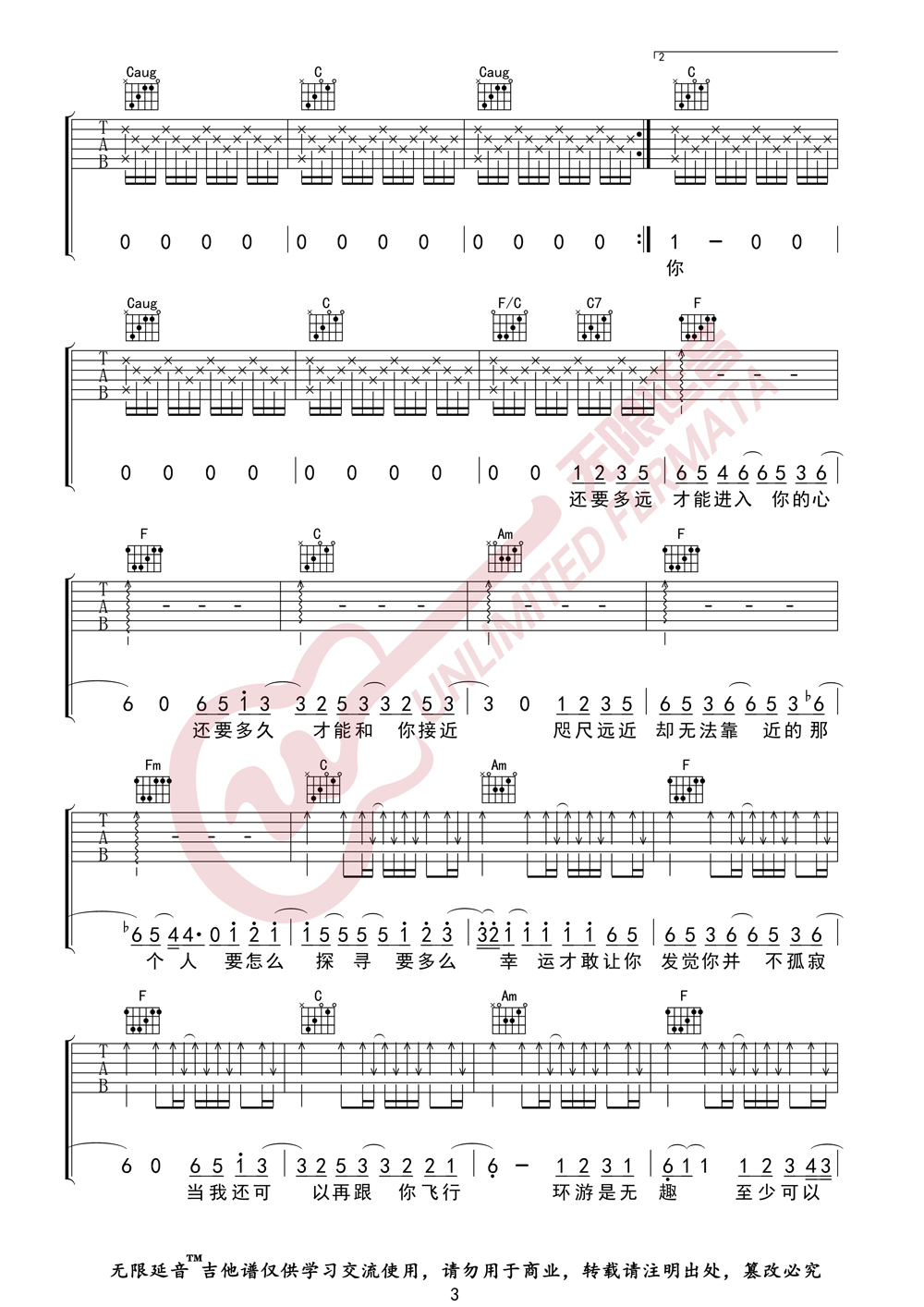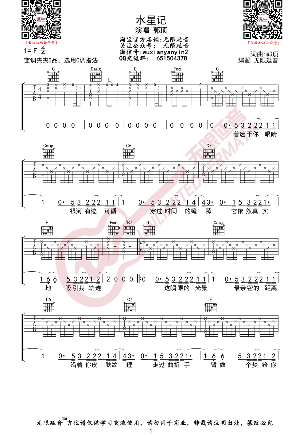 水星记 吉他谱(无限延音编配)
