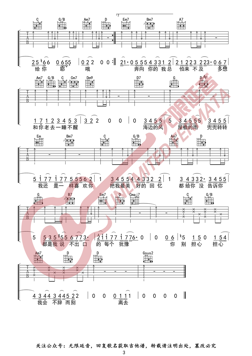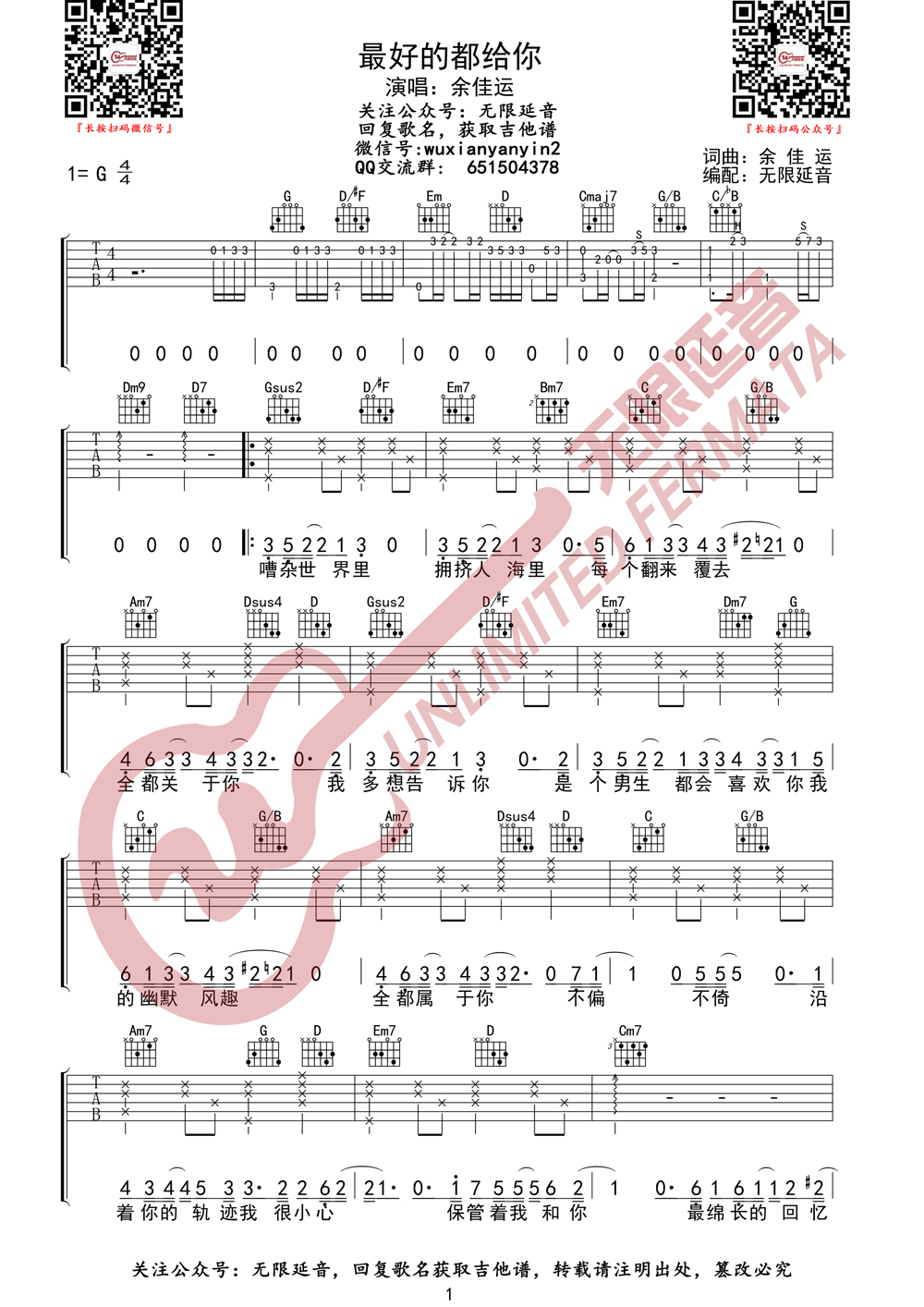 余佳运 最好的都给你 吉他谱(无限延音编配)