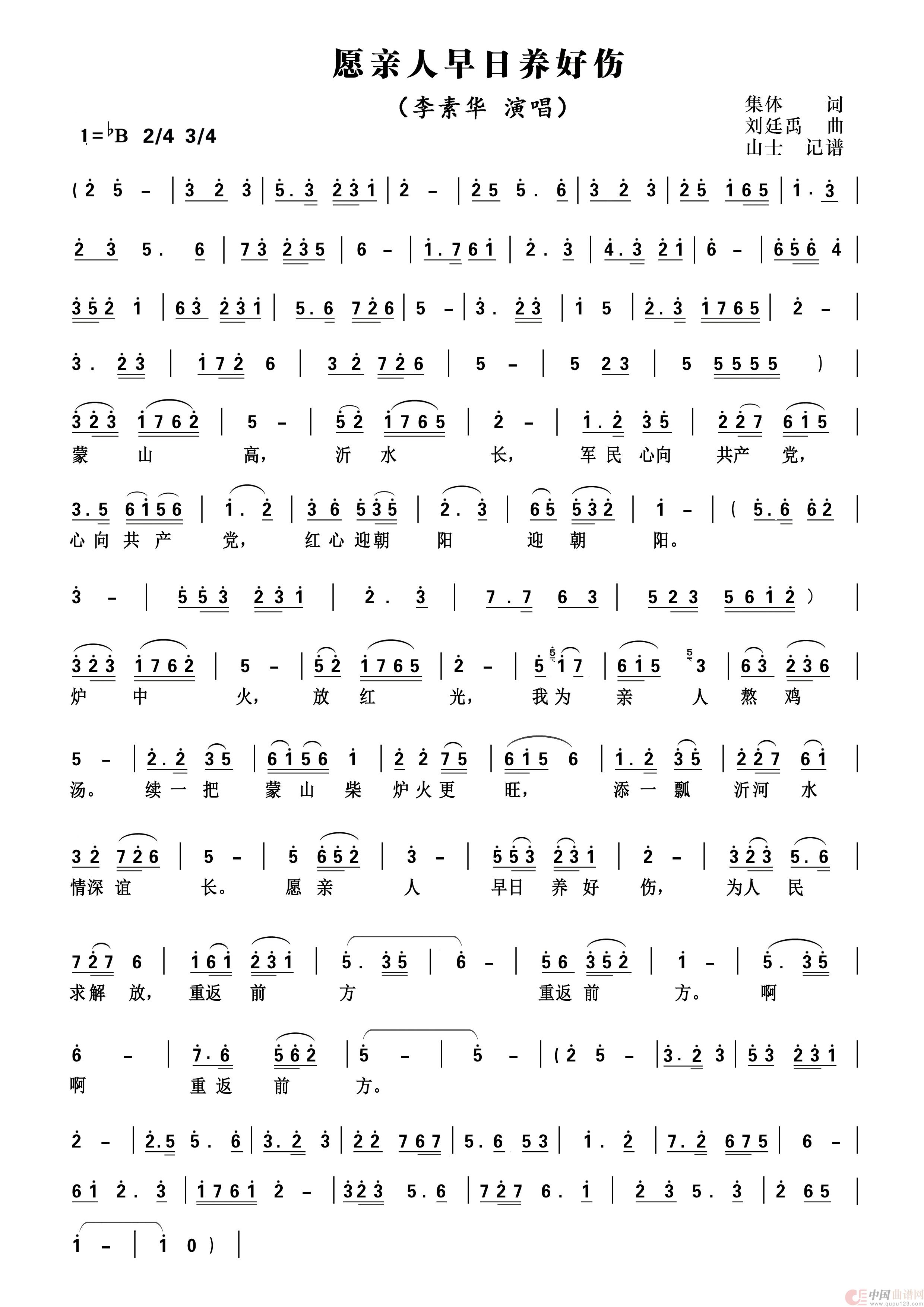 关于《愿亲人早日养好伤(李素华演唱谱)》曲谱的评论