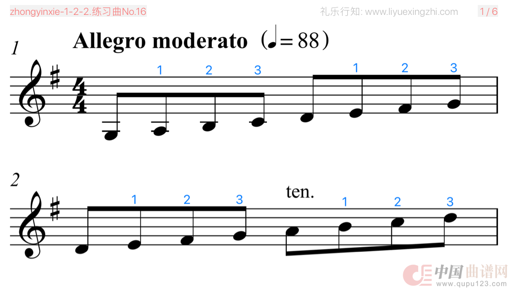 中音协小提琴考级曲目-一级,大字号版本。乐精灵小提琴APP导出乐谱。