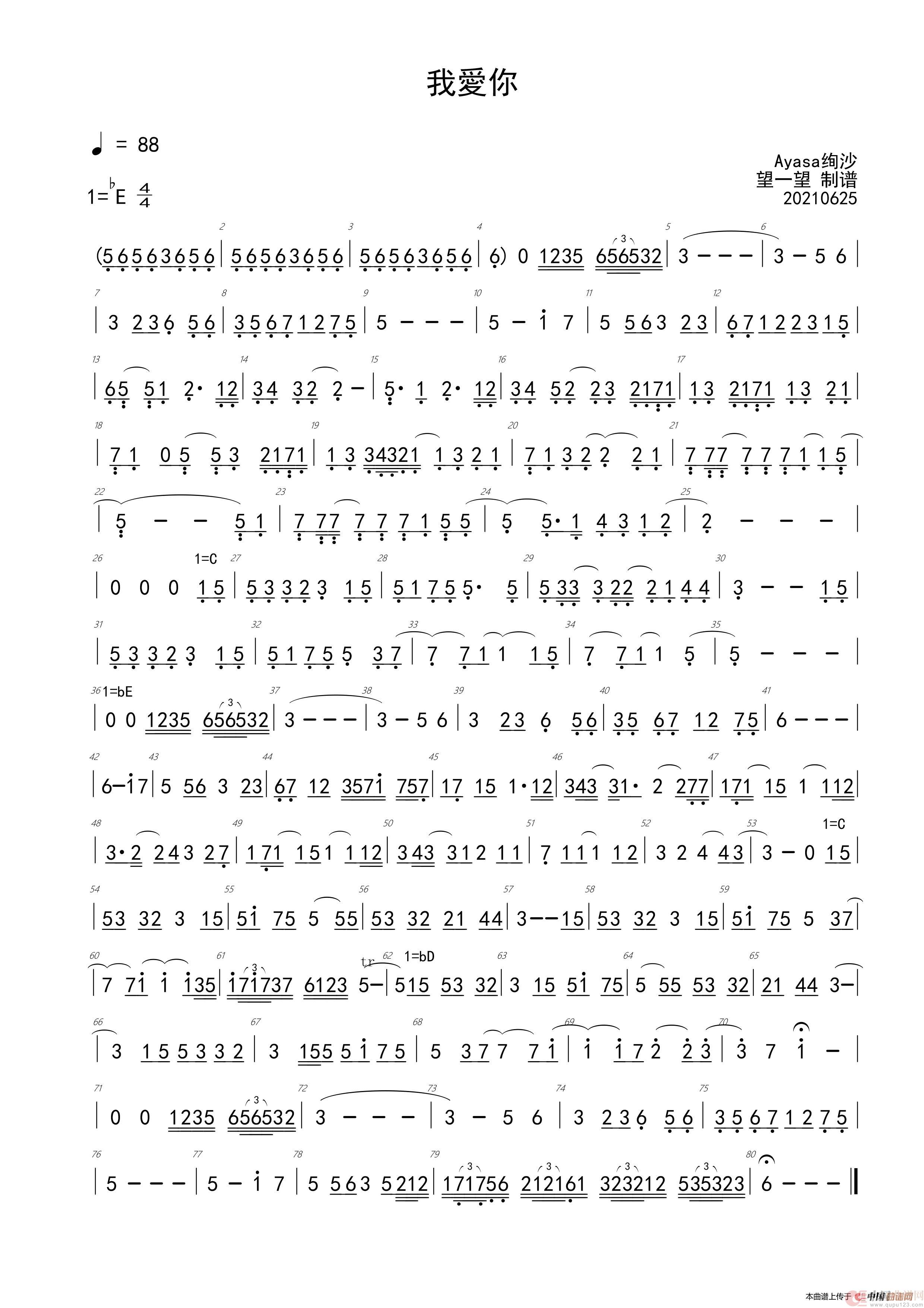 关于《我愛你 Eb→C→Eb→C→Db 首调简谱》曲谱的评论
