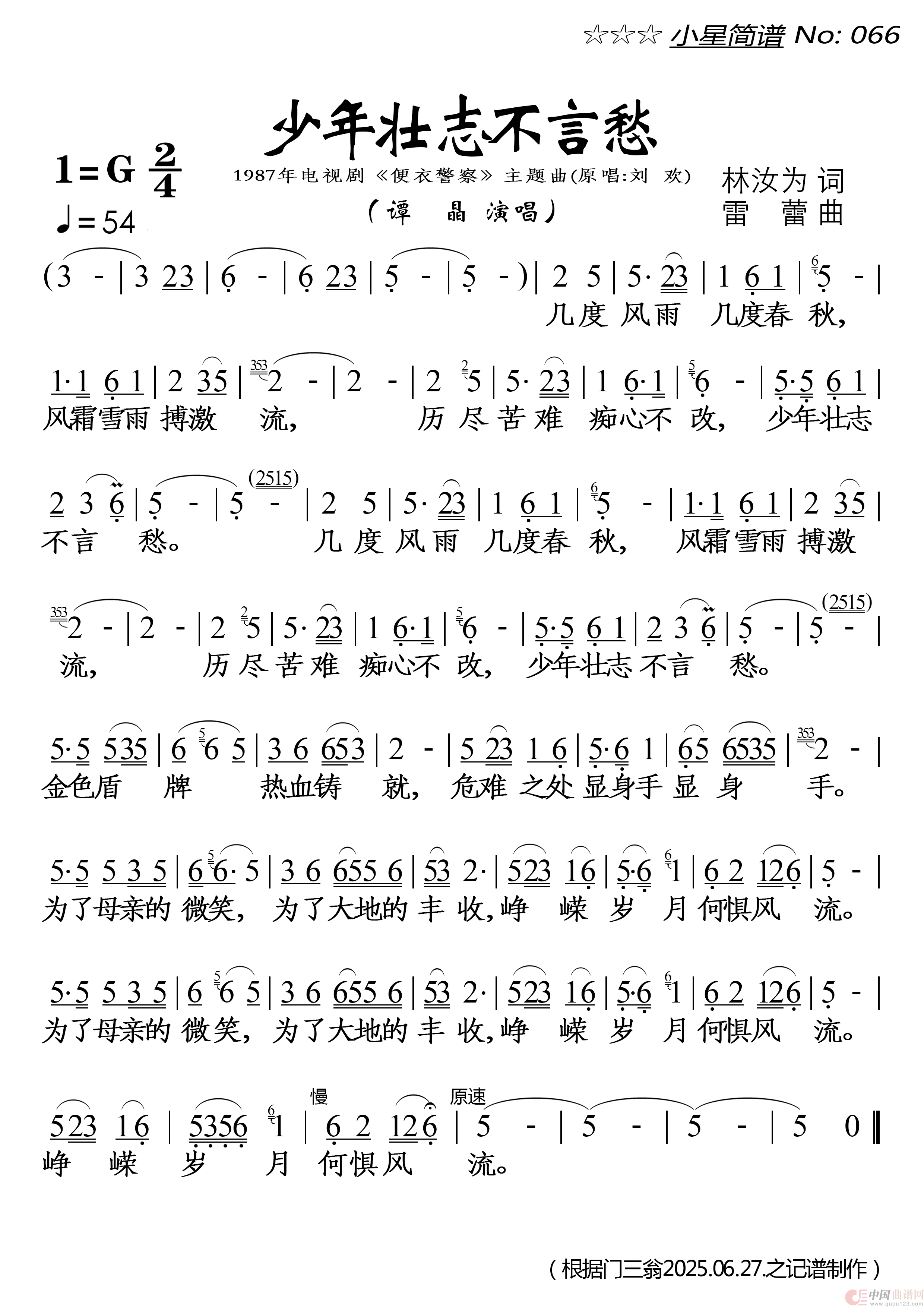 关于《少年壮志不言愁》曲谱的评论
