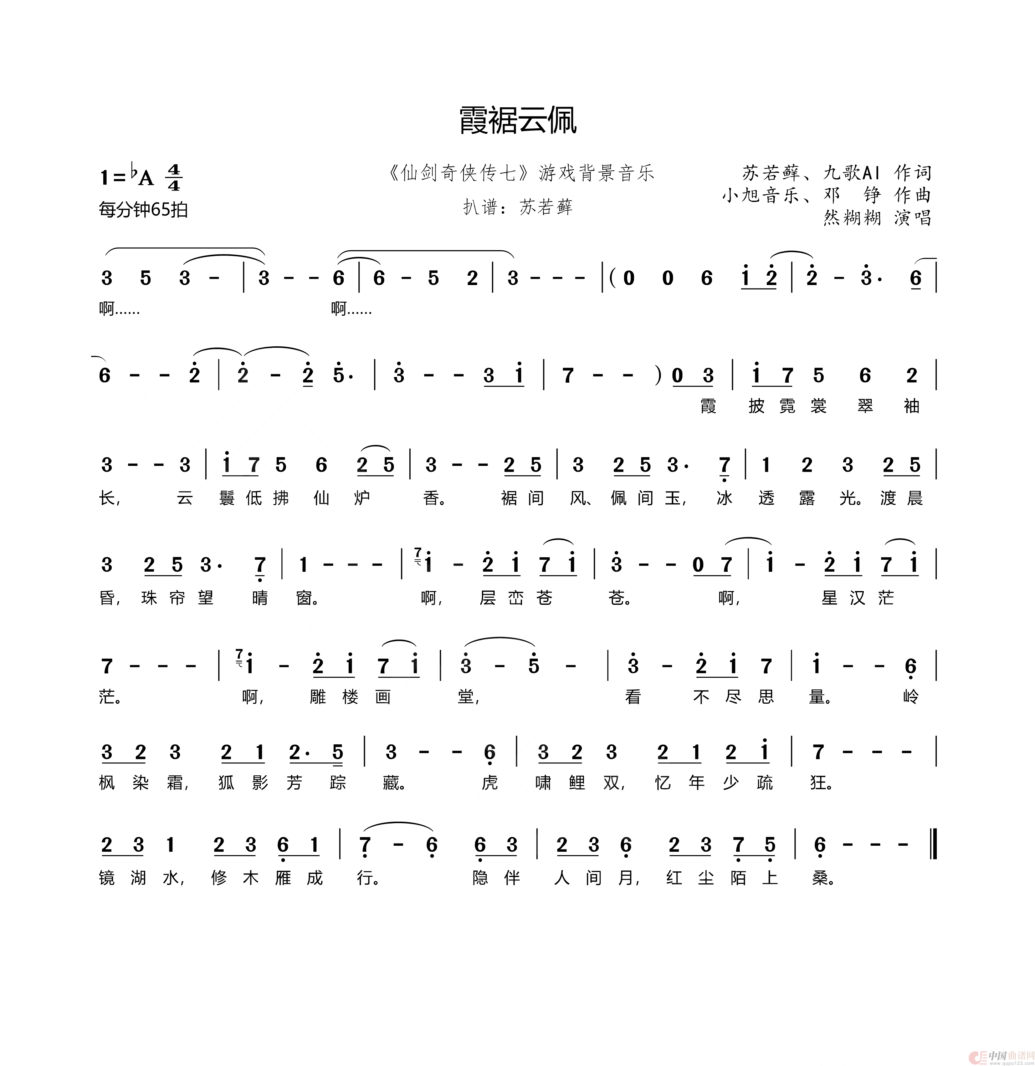 关于《霞裾云佩》曲谱的评论