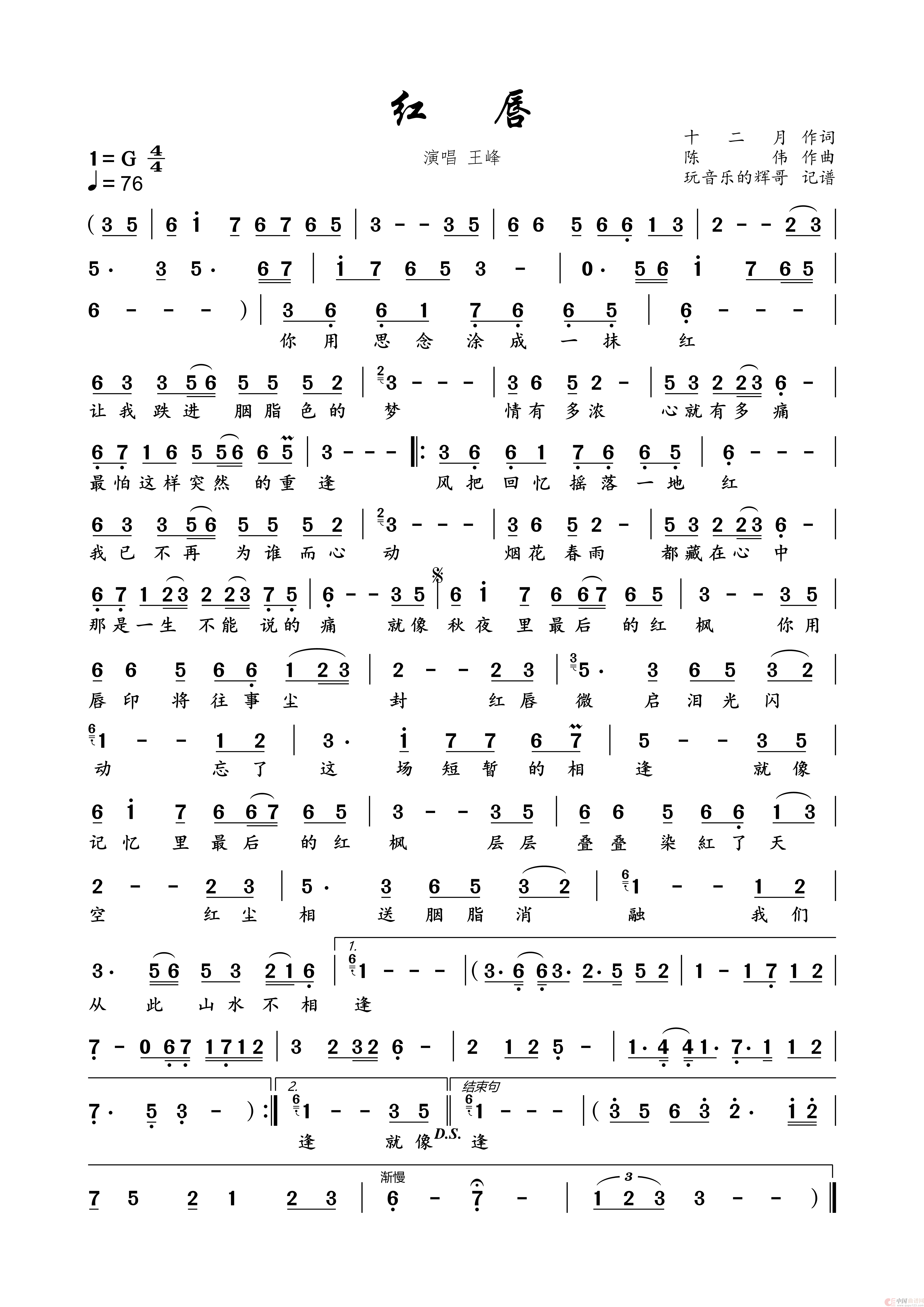关于《红唇》曲谱的评论