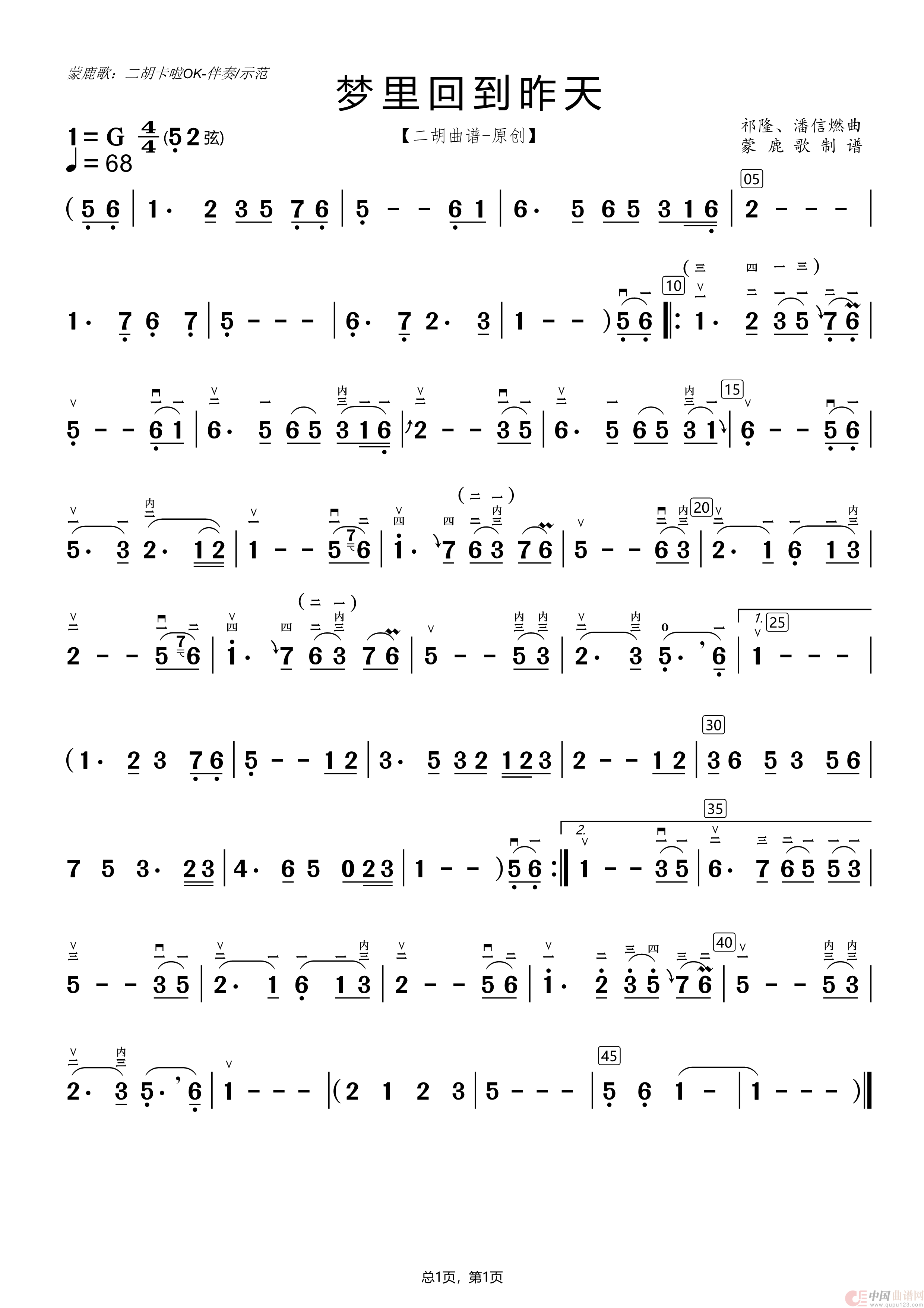 作曲:{祁隆、潘信燃 来源:谱友蒙鹿歌上传 上传:蒙鹿歌