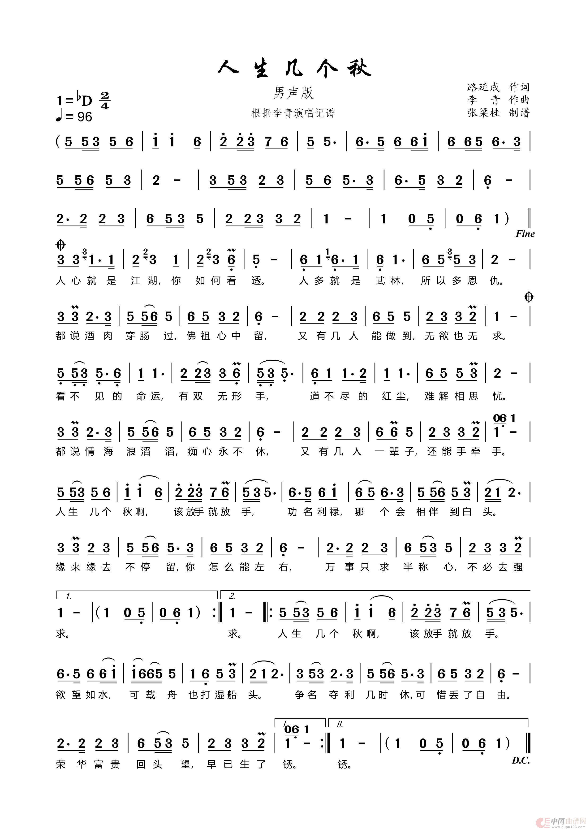 关于《人生几个秋》曲谱的评论