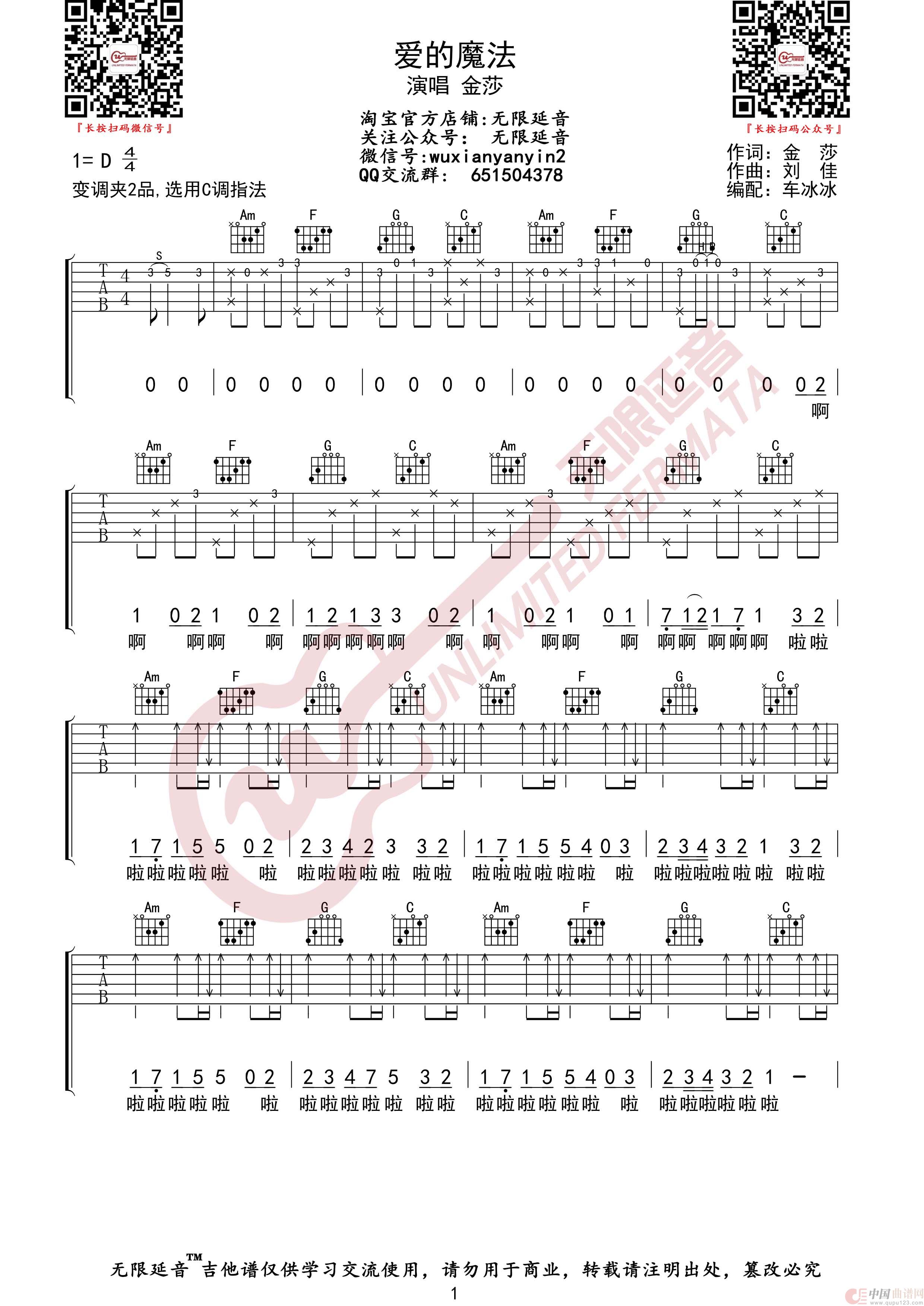 金莎 爱的魔法 吉他谱(无限延音编配)