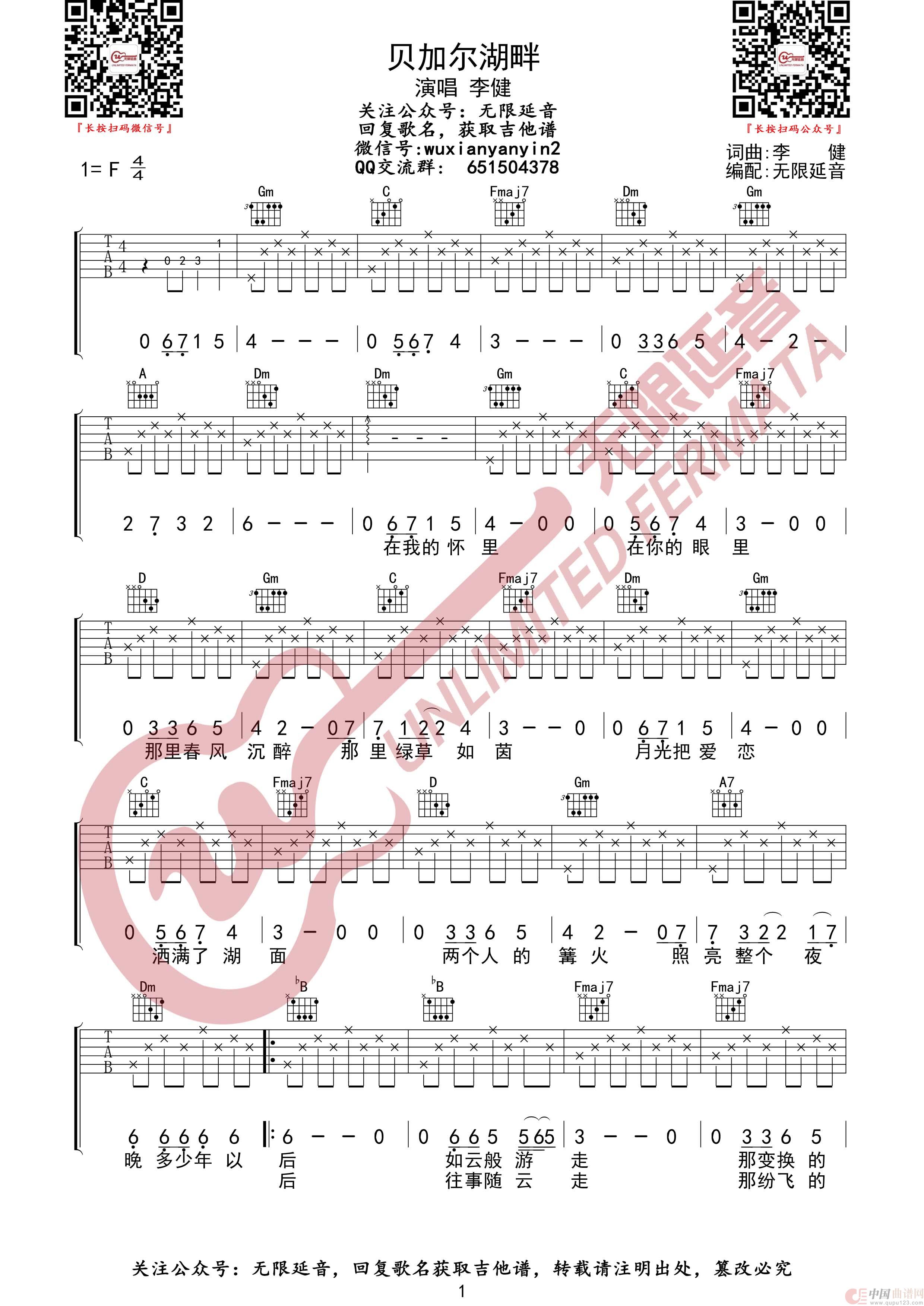 李健 贝加尔湖畔 吉他谱(无限延音编配)