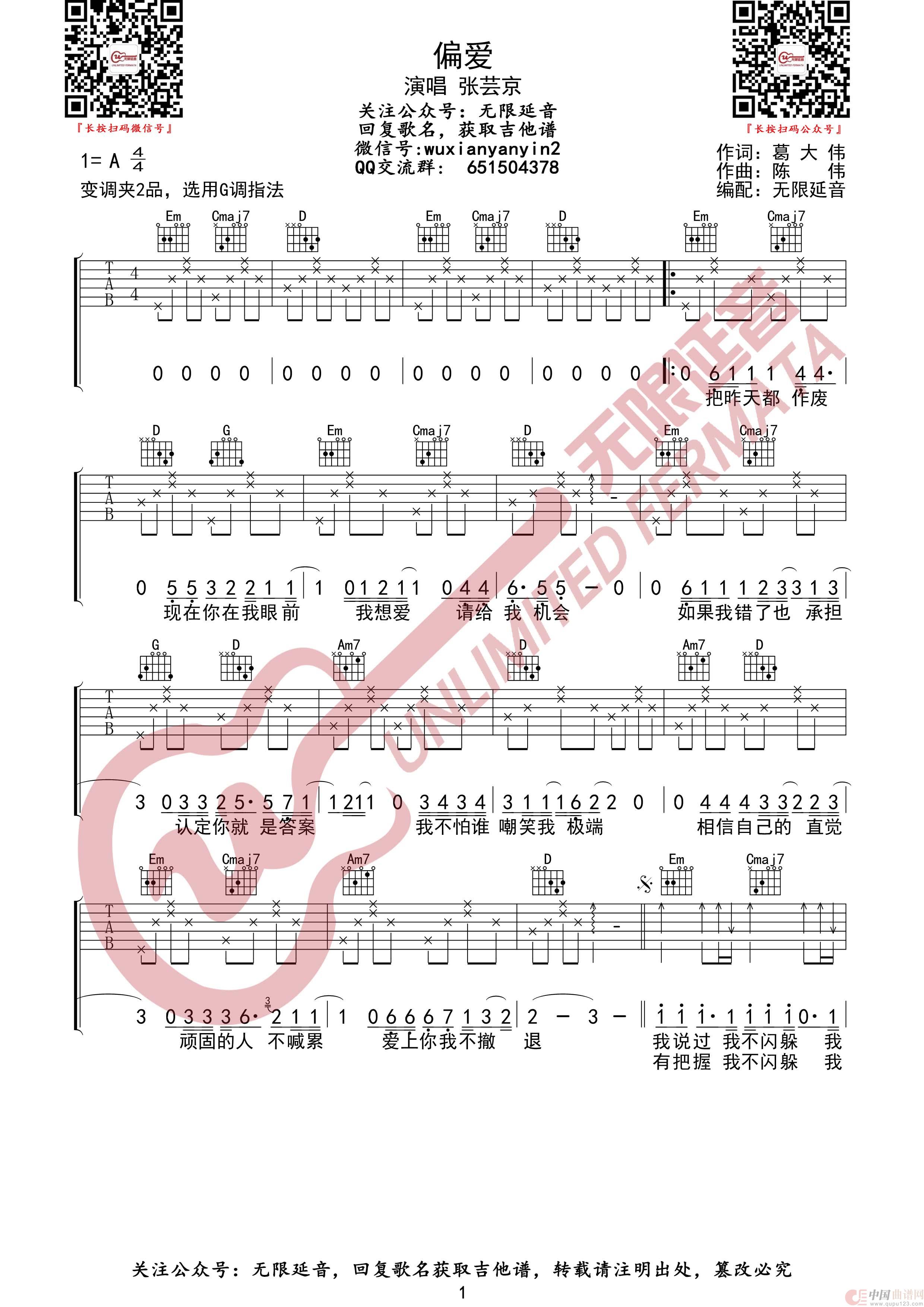 偏爱 吉他谱(无限延音编配)