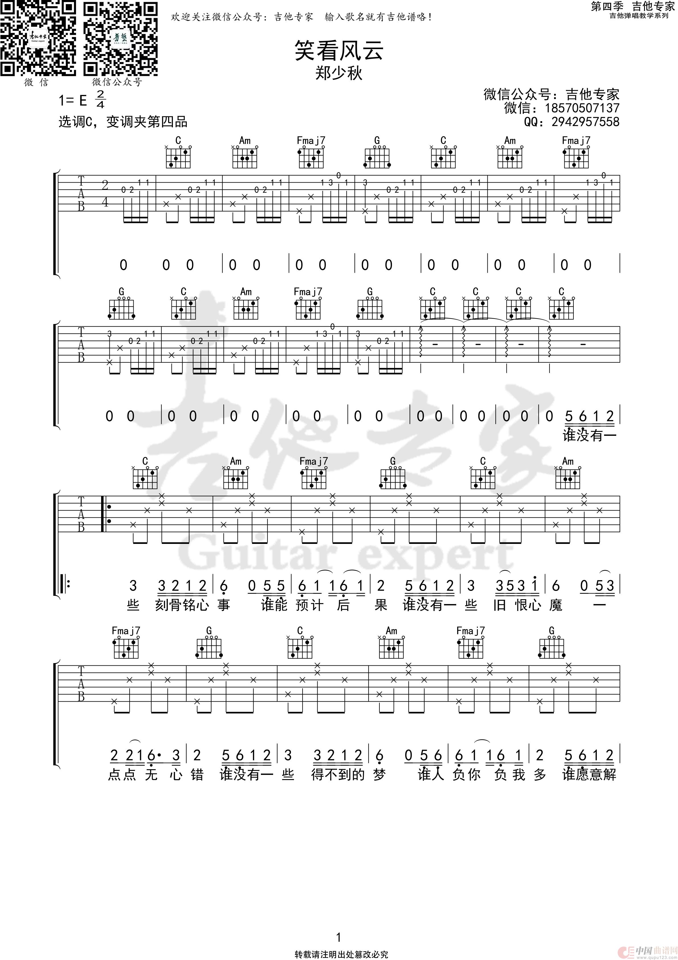 提示:在曲谱图片上单击右键,选择"图片另存为..."即可将曲谱保存到您的电脑中,打印时候可将图片插入到WORD中,调整合适大小打印即可。