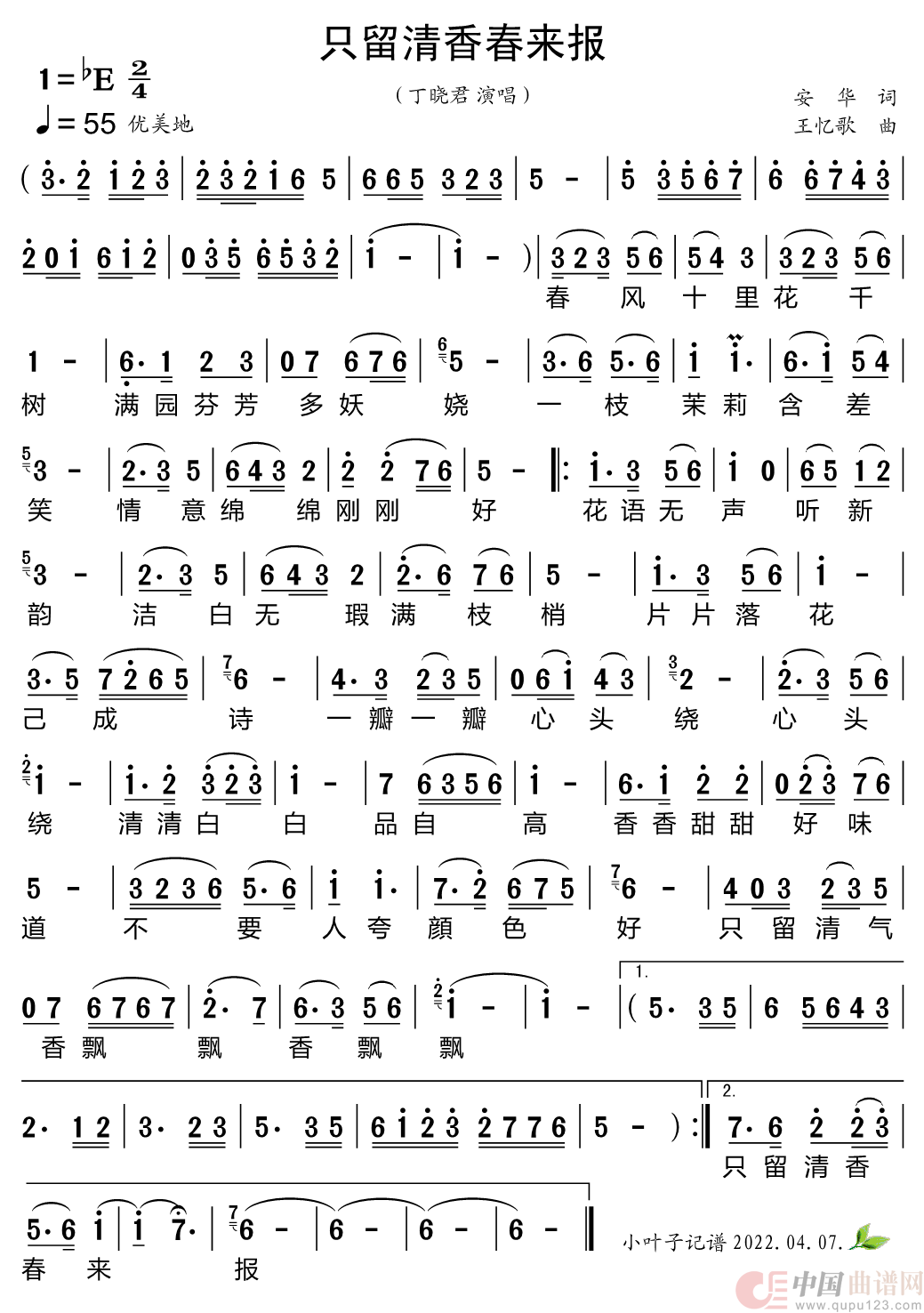 关于《只留清香春来报》曲谱的评论