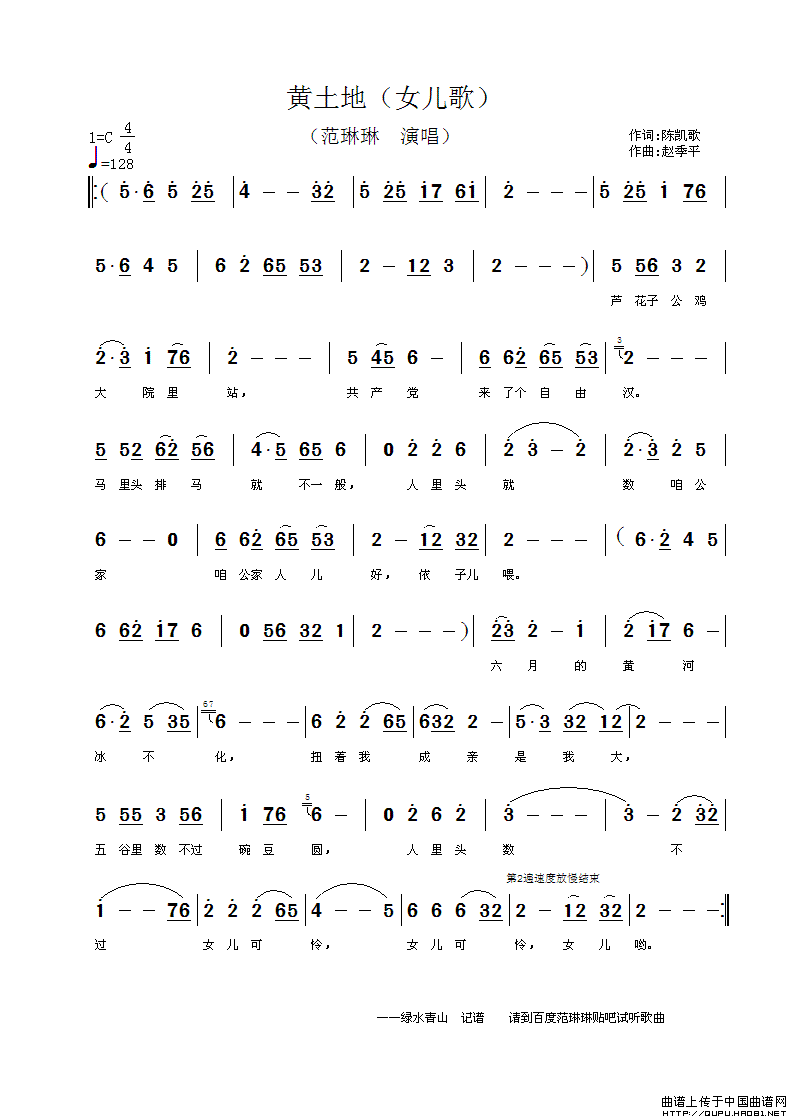 作词:陈凯歌   作曲:赵季平   演唱(奏):范琳琳   格式:简谱   来源:谱友绿水青山   上传:绿水青山   日期:2011-09-29   浏览次数:
