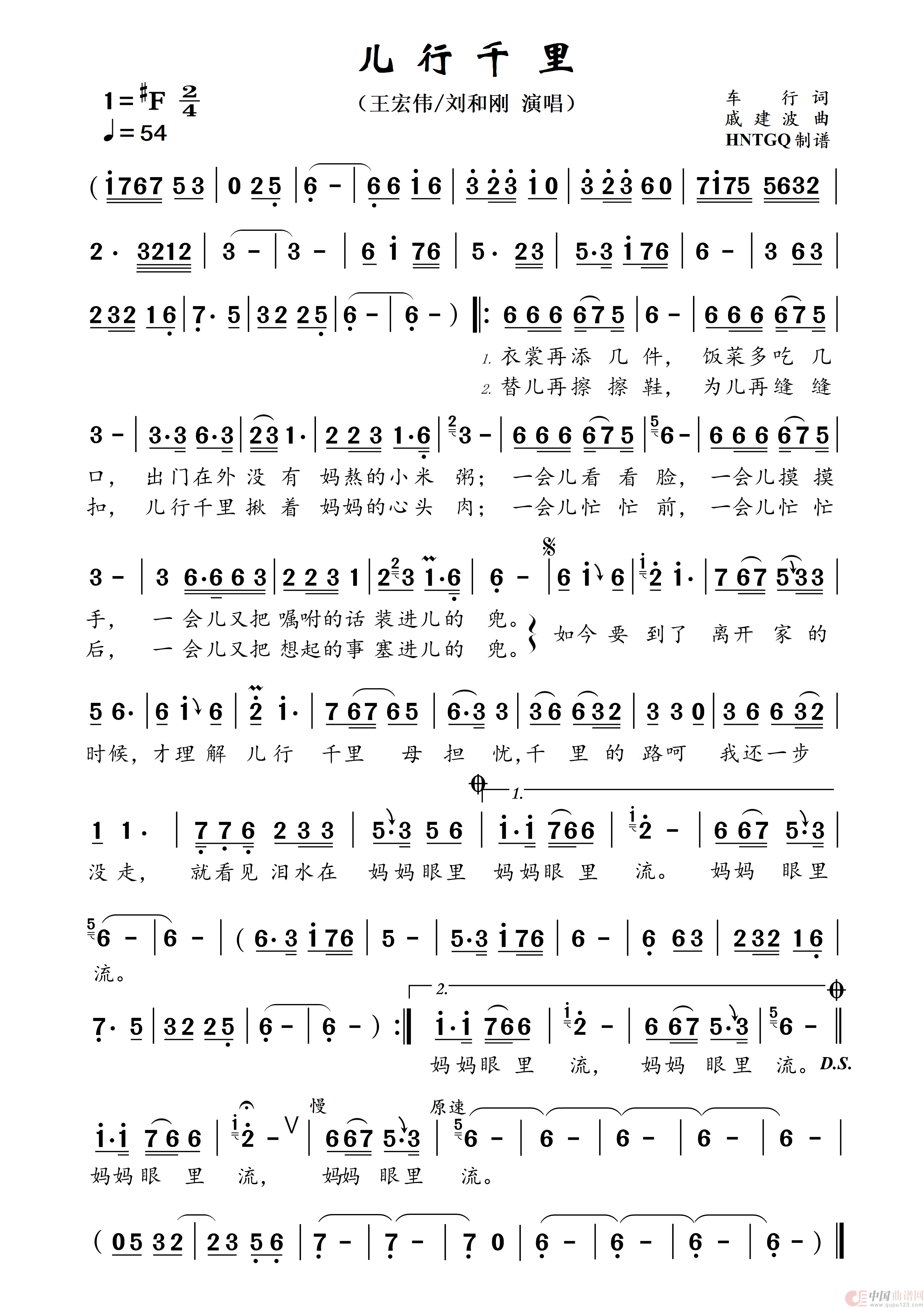 关于《儿行千里》曲谱的评论