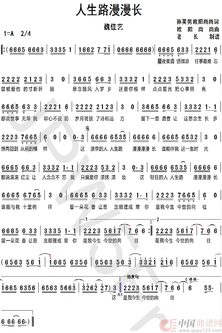 作词:孙英男欧阳尚尚   作曲:欧阳尚尚   演唱(奏):魏佳艺   来源:谱友指尖上的老长上传   上传:指尖上的老长   日期:2022-04-24   浏览次数: