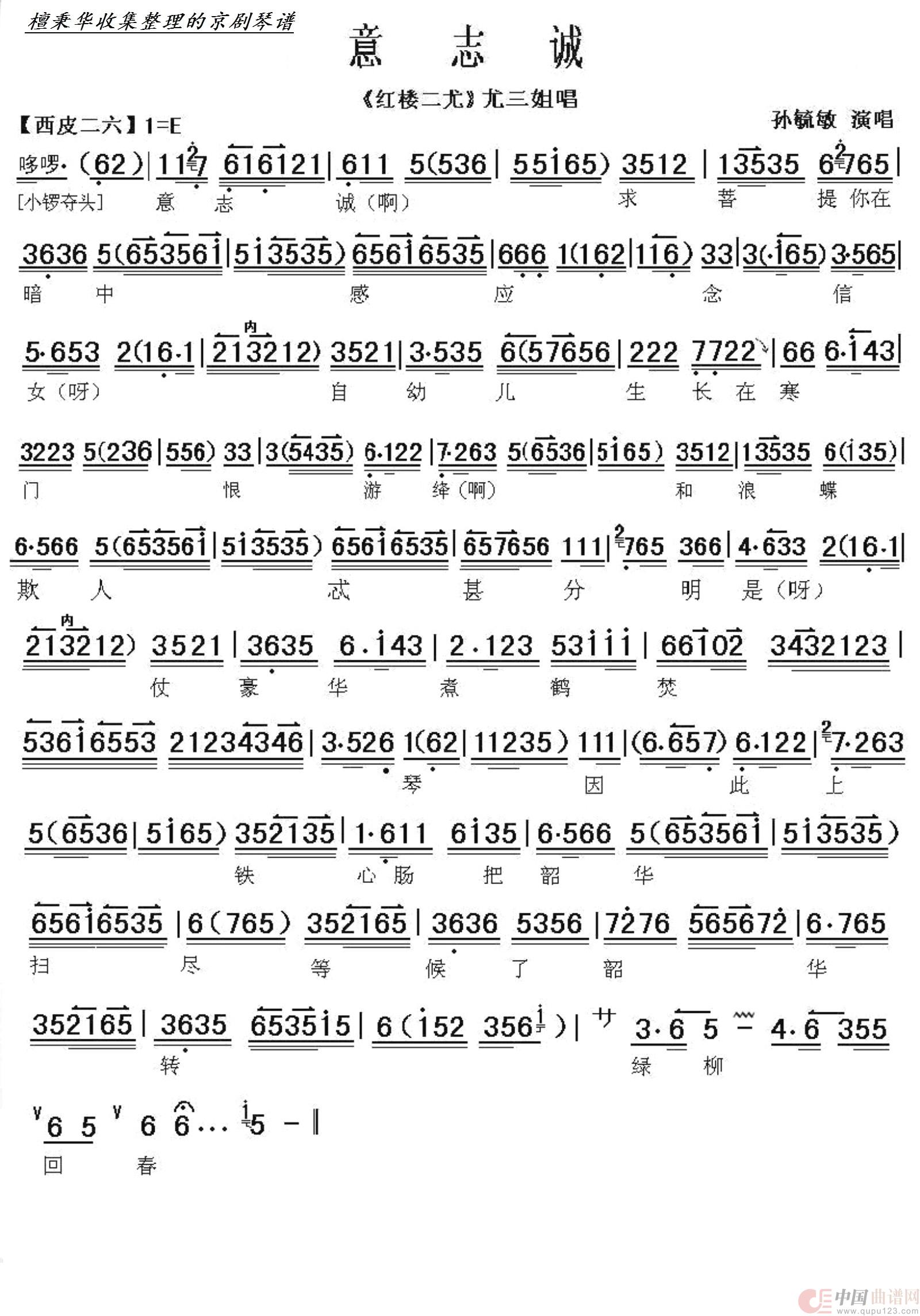 京剧《红楼二尤》意志诚求菩提....(京胡伴奏谱)