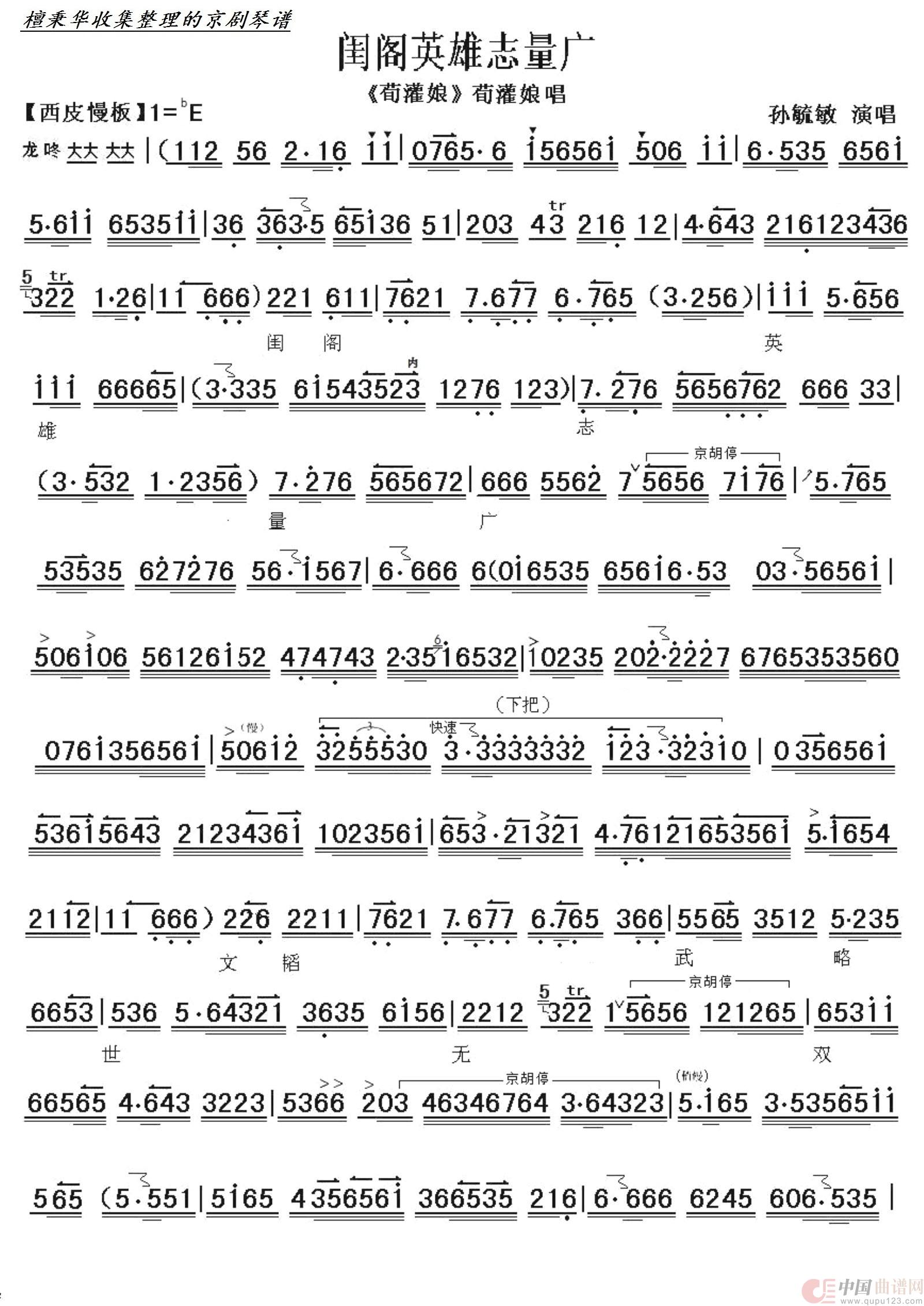 京剧《荀灌娘》闺阁英雄志量广(京胡伴奏谱)