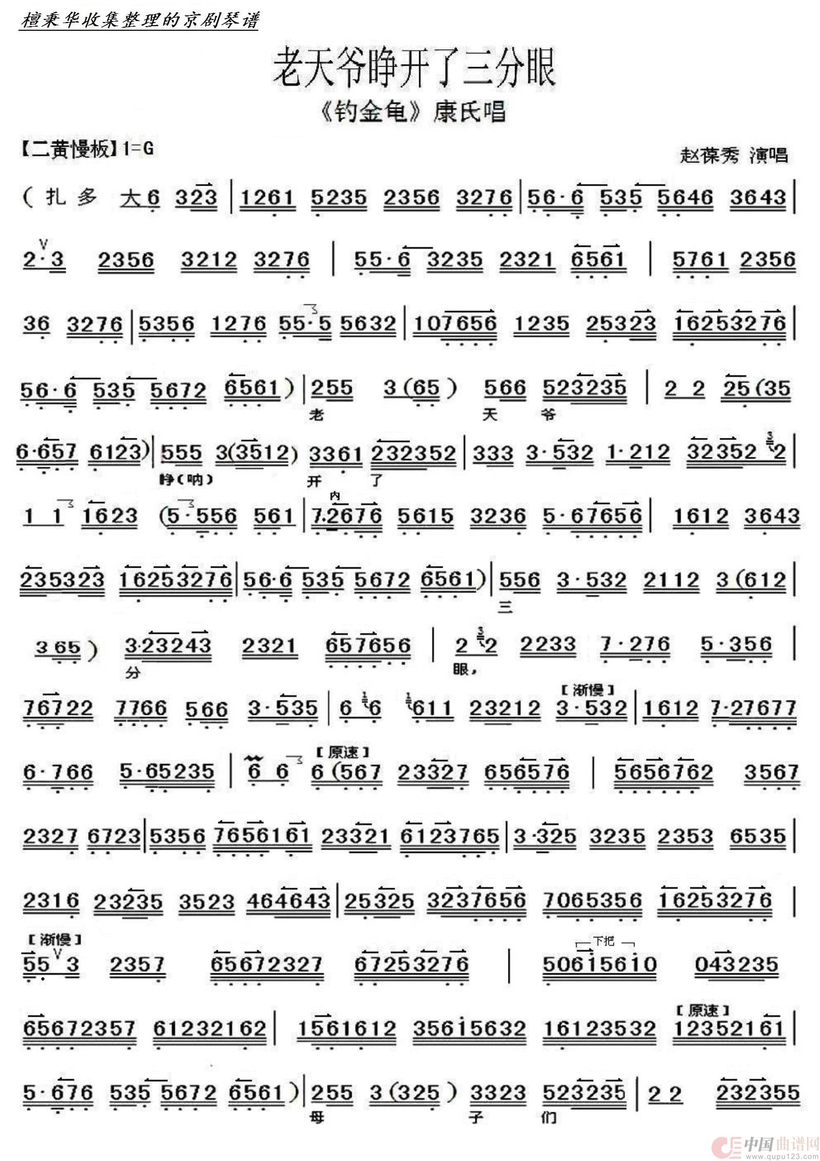 京剧《钓金龟》老天爷睁开了三分眼(京胡伴奏谱)