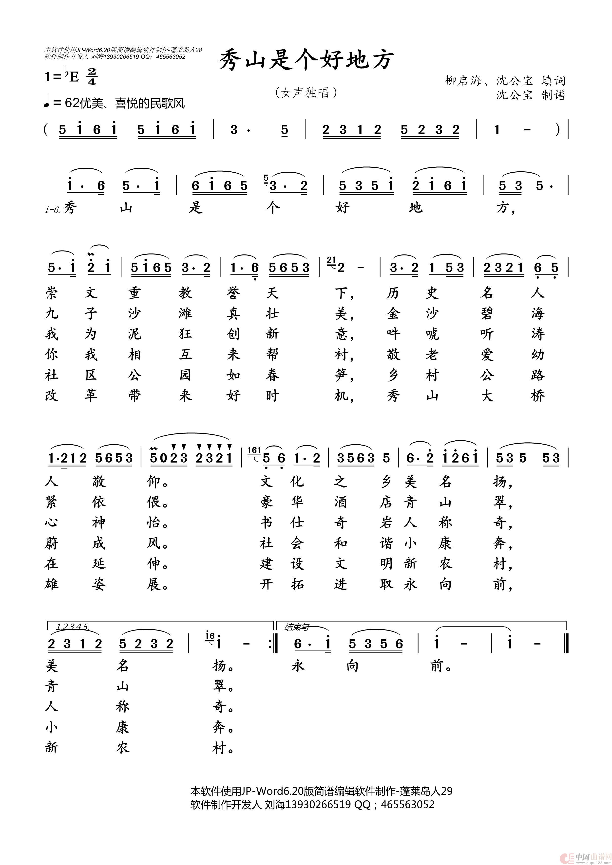 关于《秀山是个好地方》曲谱的评论