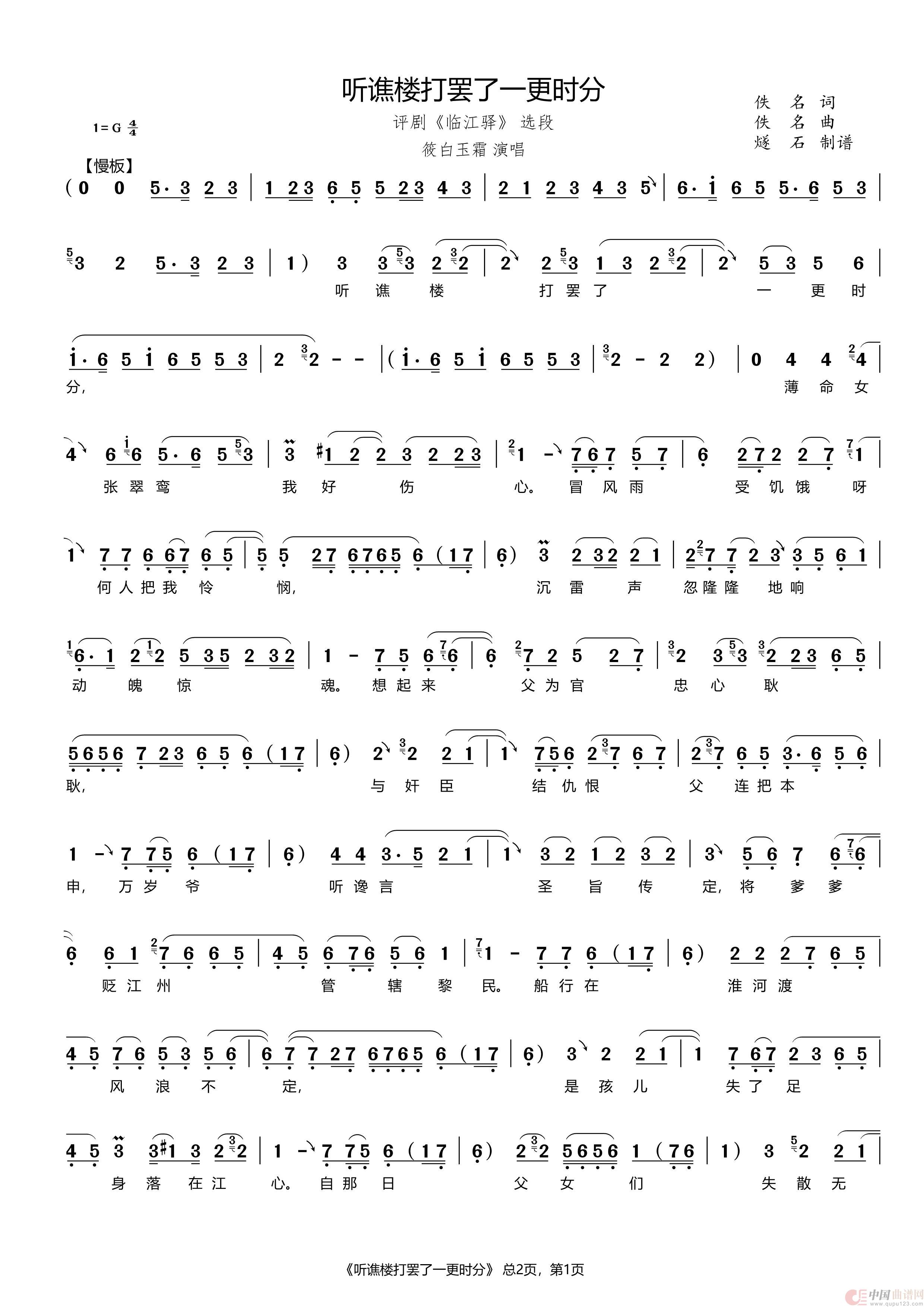 关于《听谯楼打罢了一更时分》曲谱的评论