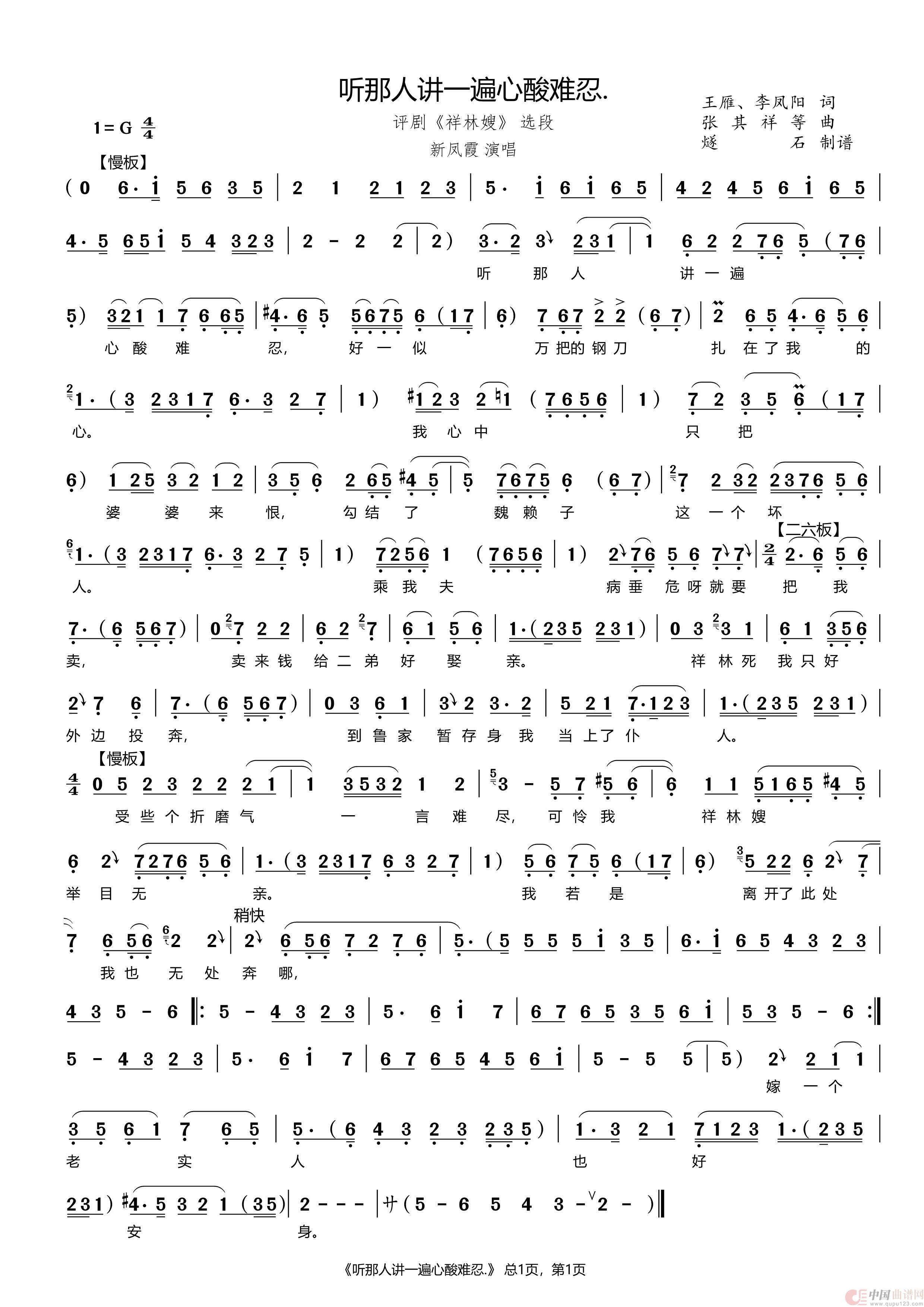 关于《听那人讲一遍心酸难忍》曲谱的评论