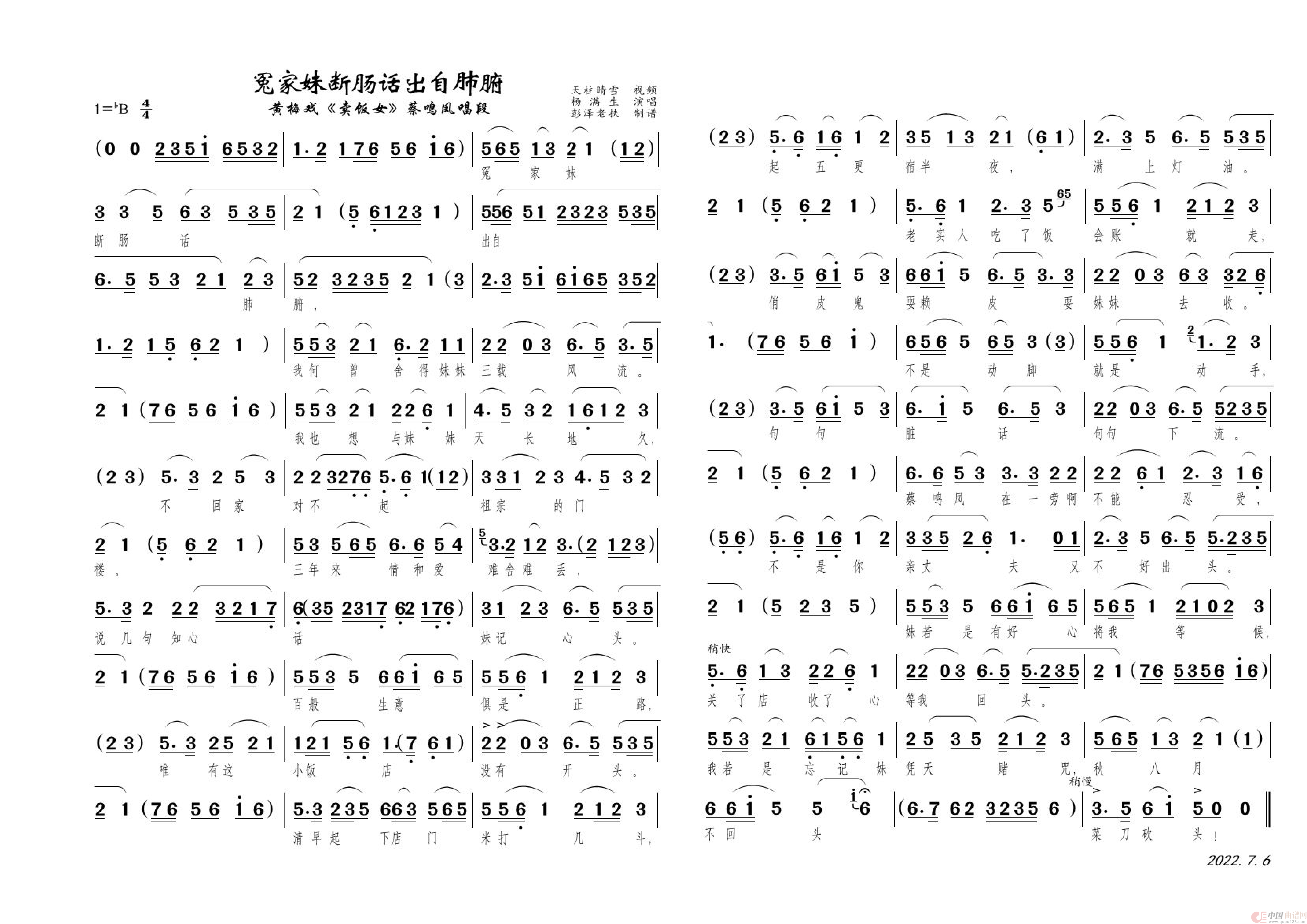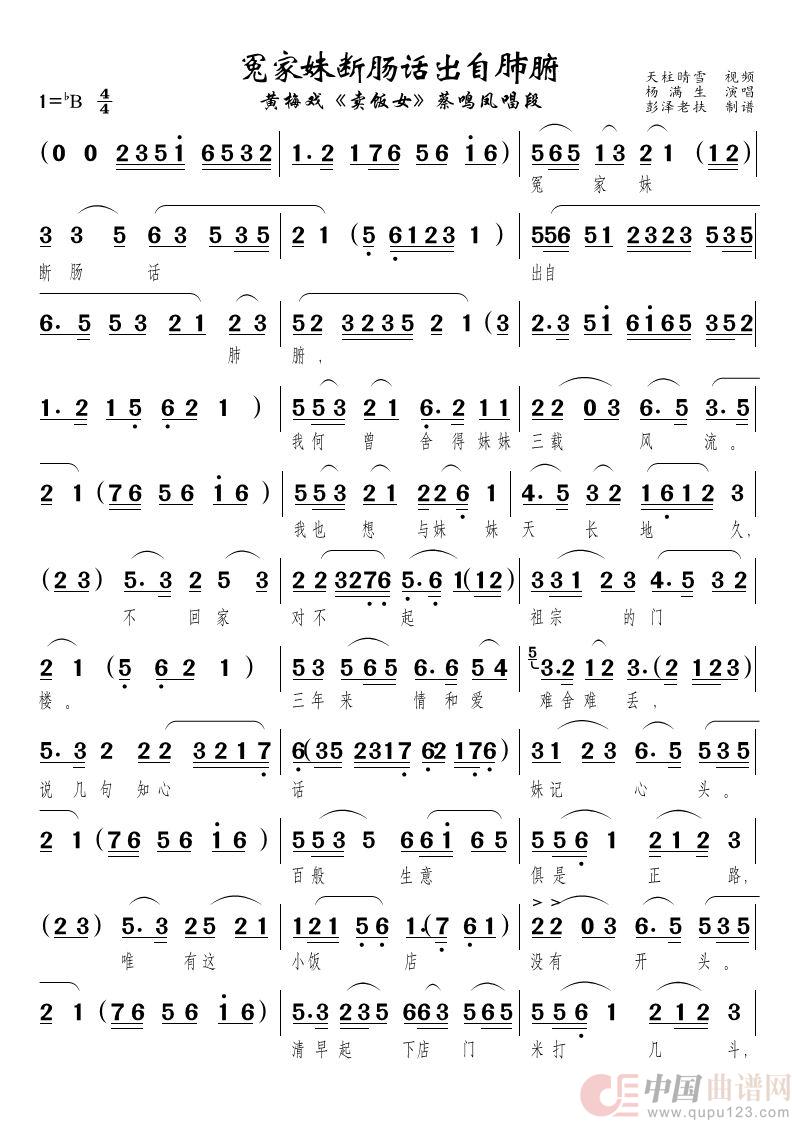 关于《冤家妹断肠话出自肺腑》曲谱的评论