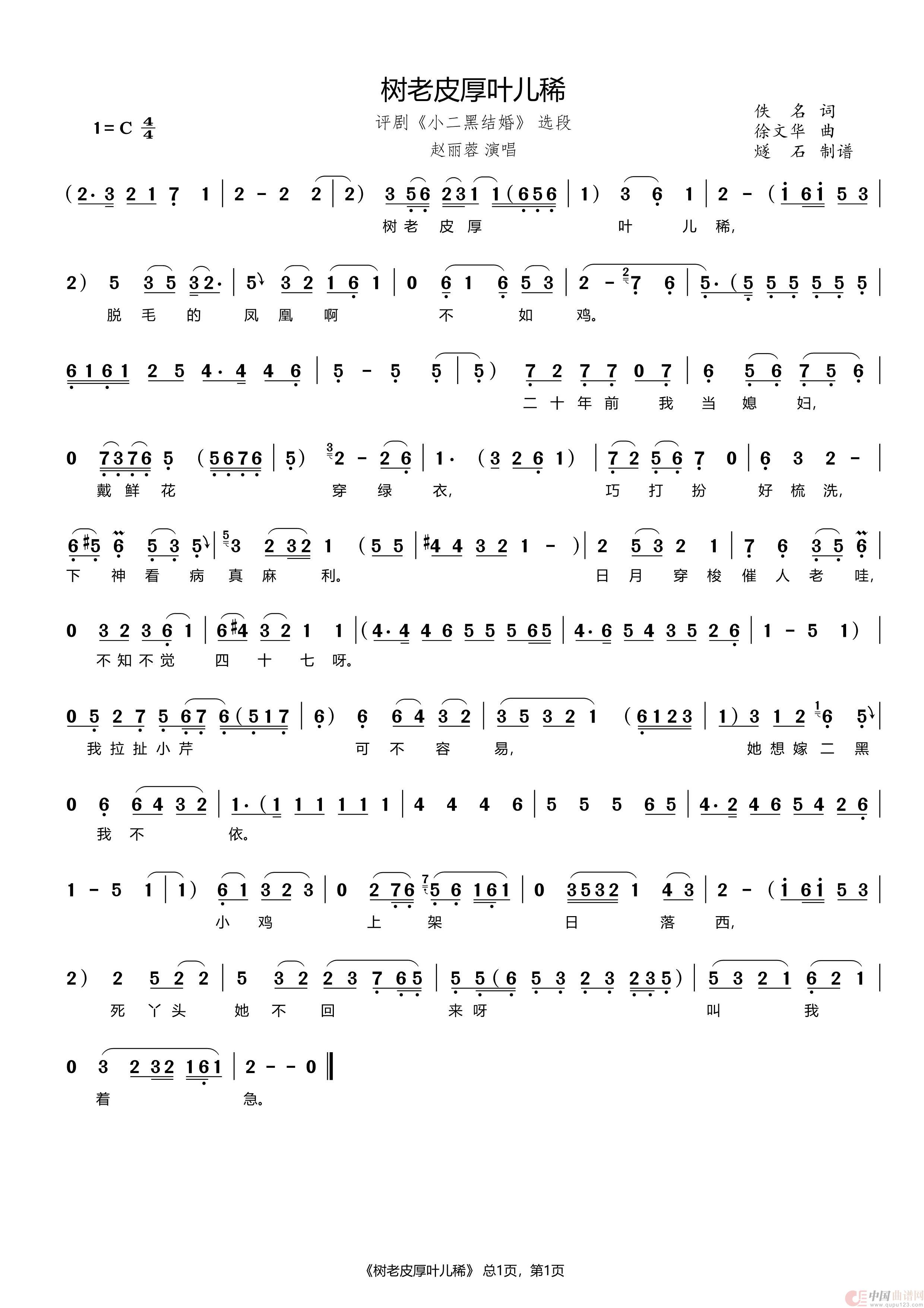 树老皮厚叶儿稀(评剧《小二黑结婚》选段)(1)_原文件名:树老皮厚叶儿稀.jpg