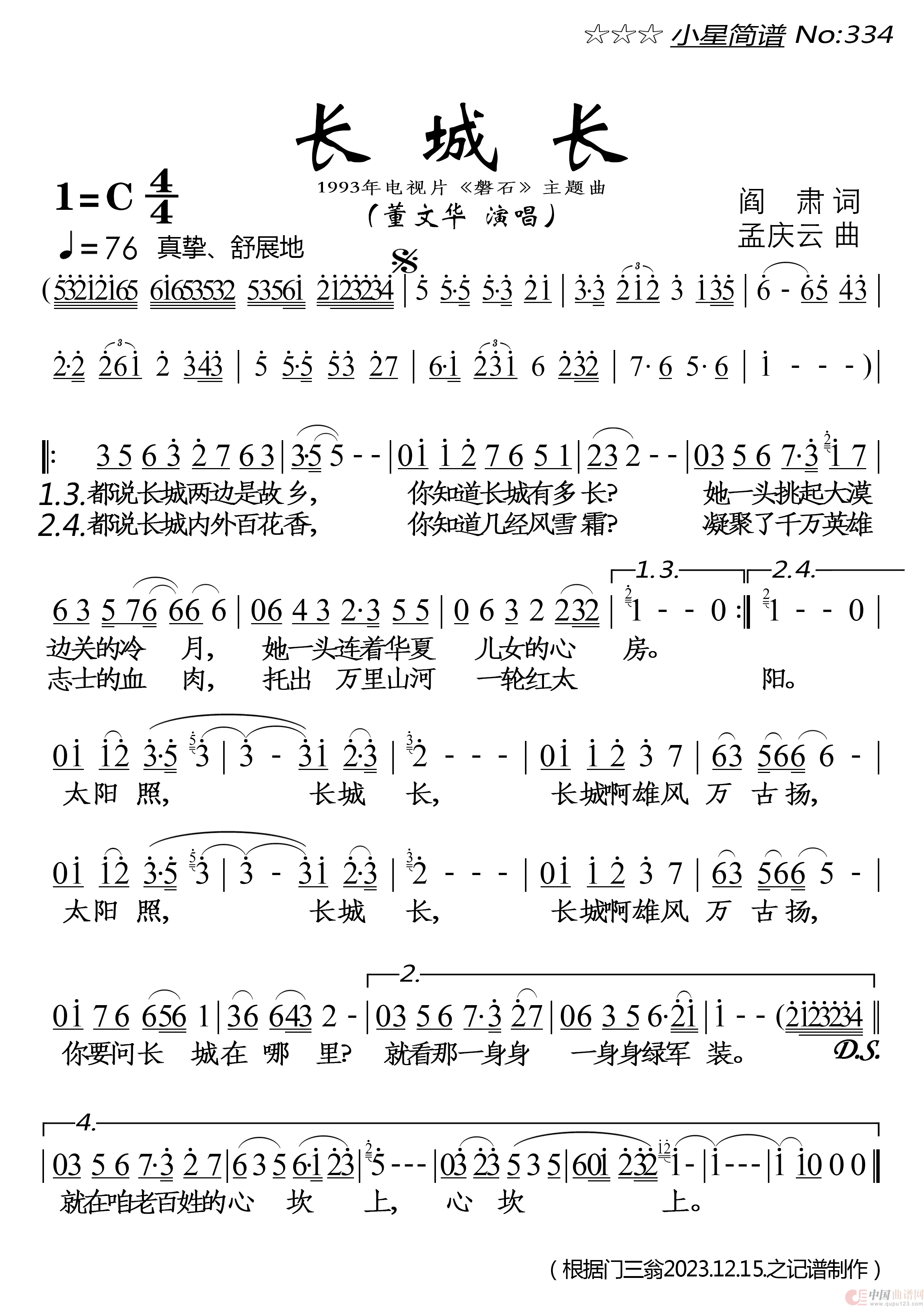 关于《长城长》曲谱的评论