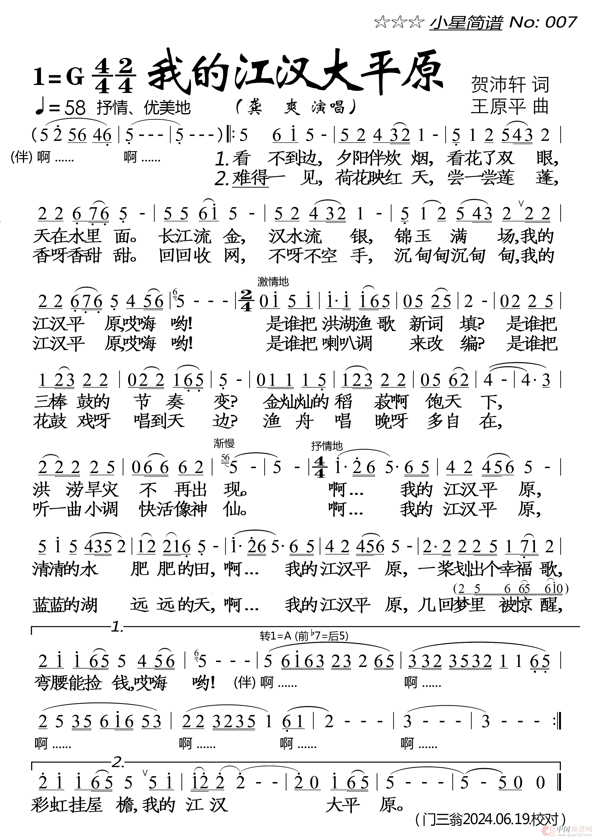 关于《我的江汉大平原》曲谱的评论