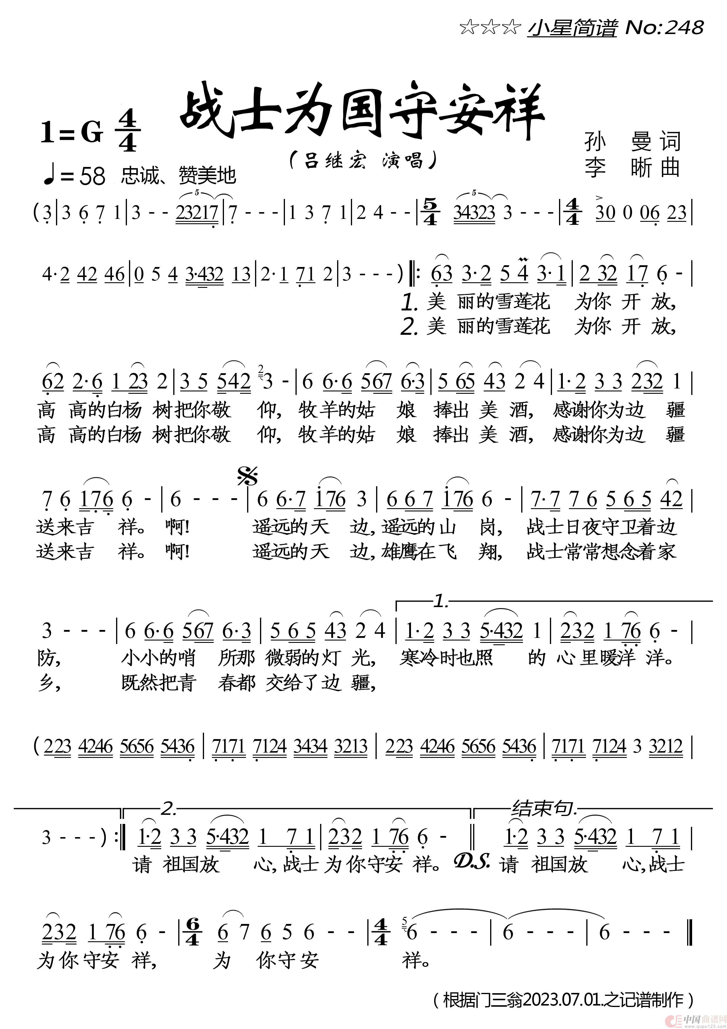 关于《战士为国守安详》曲谱的评论