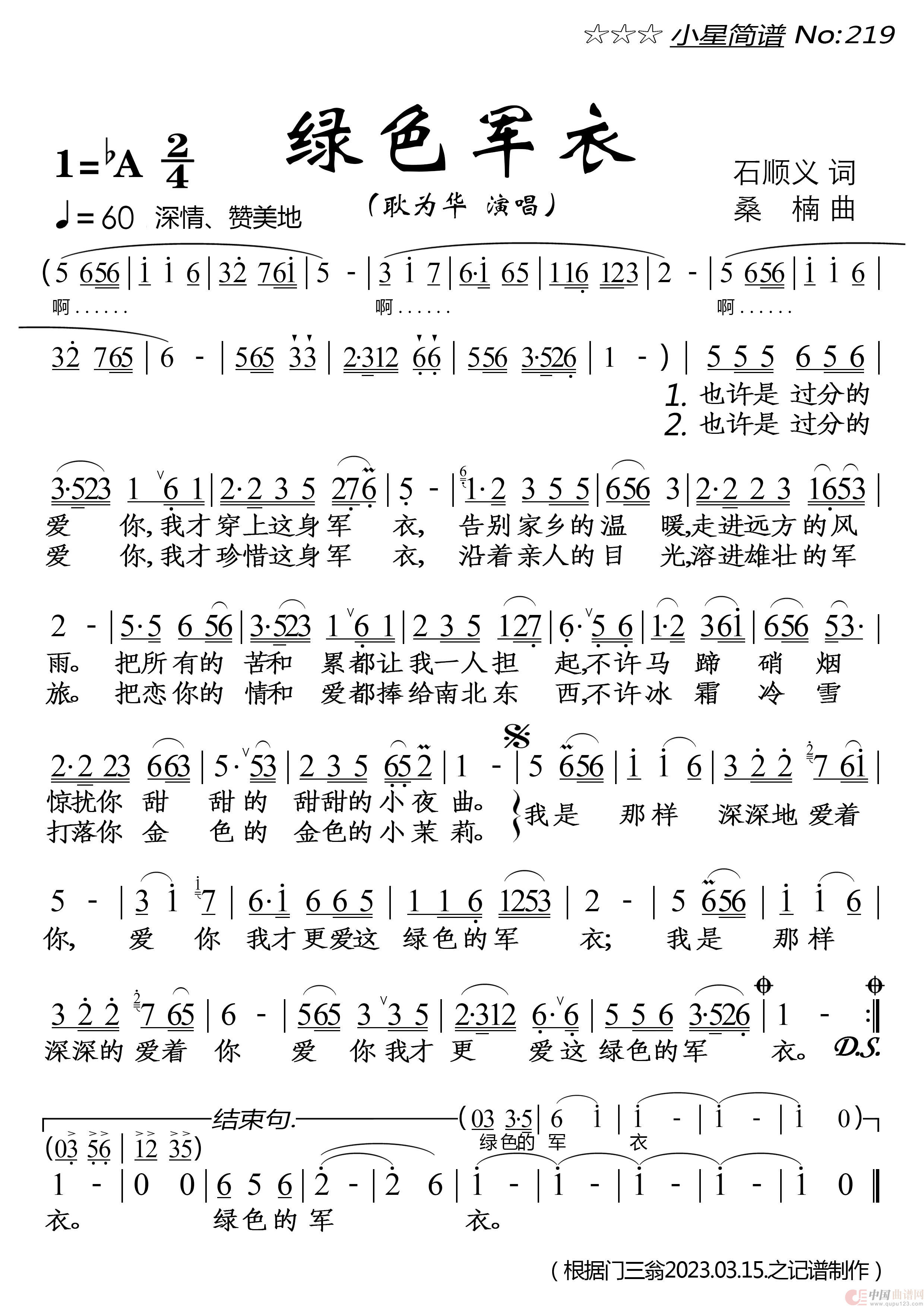 关于《绿色军衣》曲谱的评论