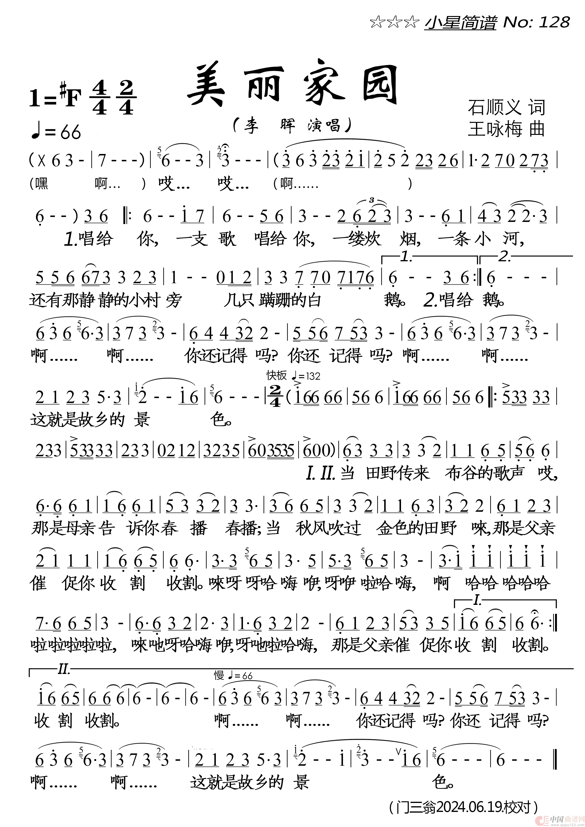 关于《美丽家园》曲谱的评论