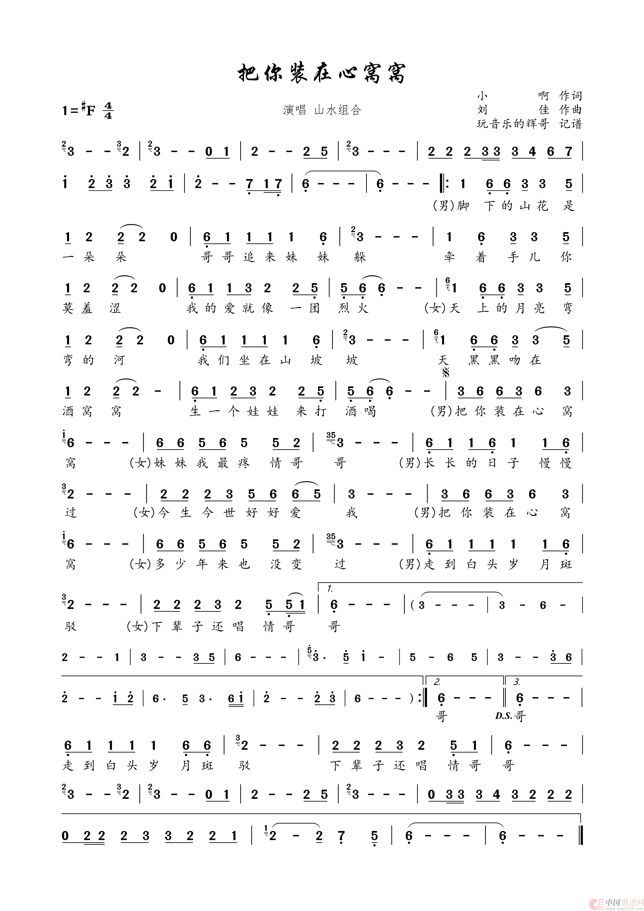 关于《把你装在心窝窝》曲谱的评论