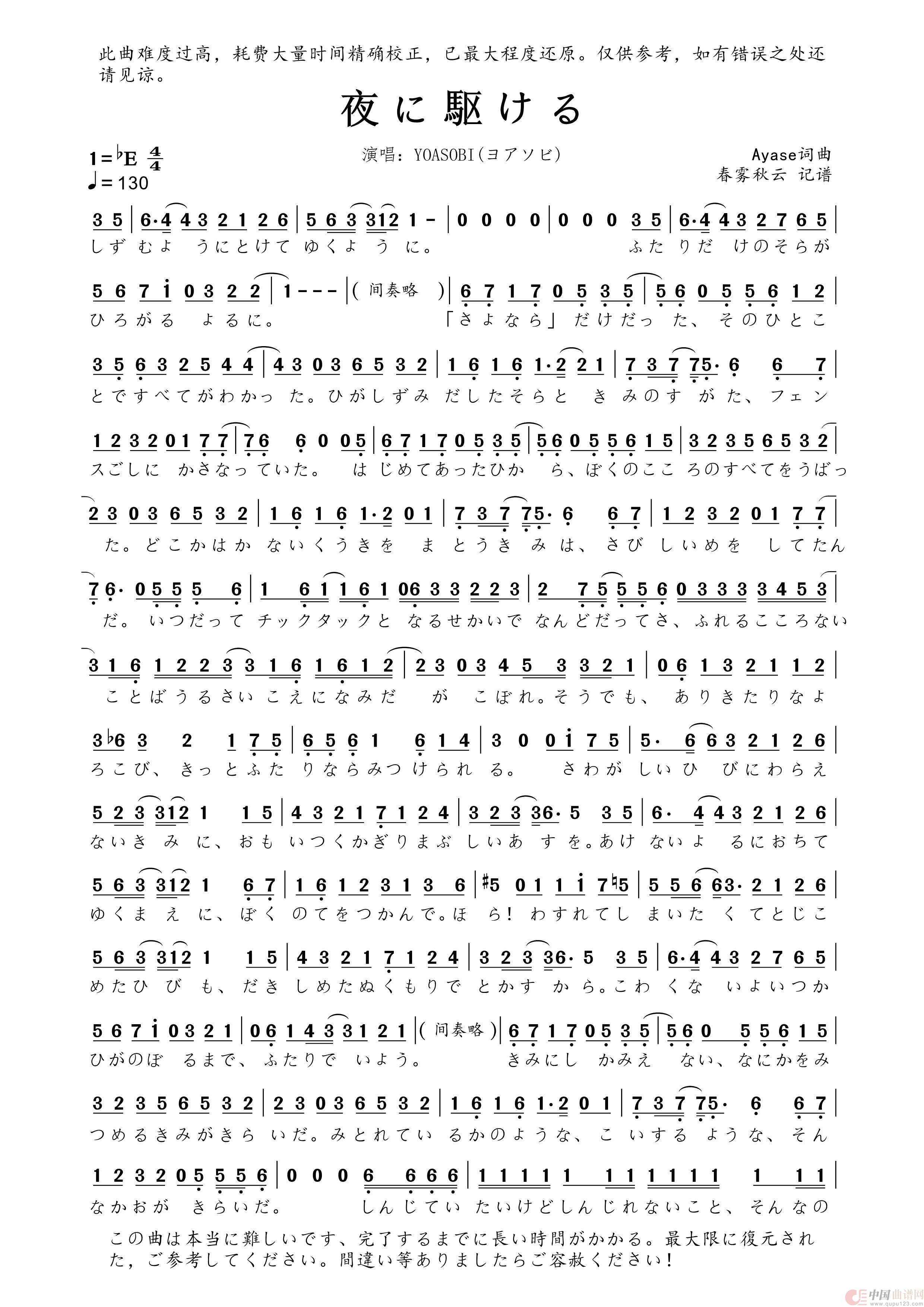 作词:Ayase 作曲:Ayase 演唱(奏):YOASOBI 来源:谱友蒹葭采采上传 上传:蒹葭采采