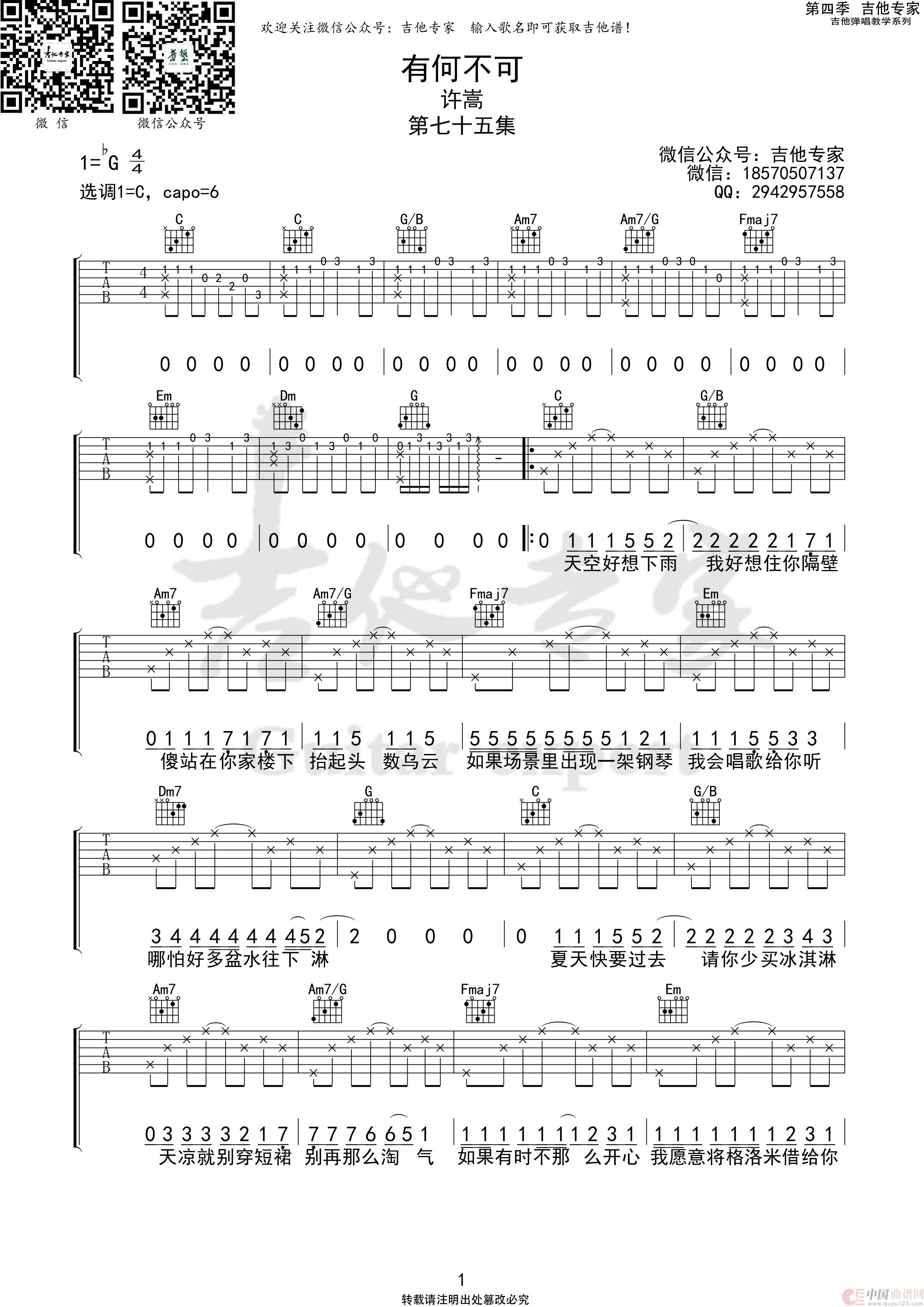 有何不可(免费吉他谱)