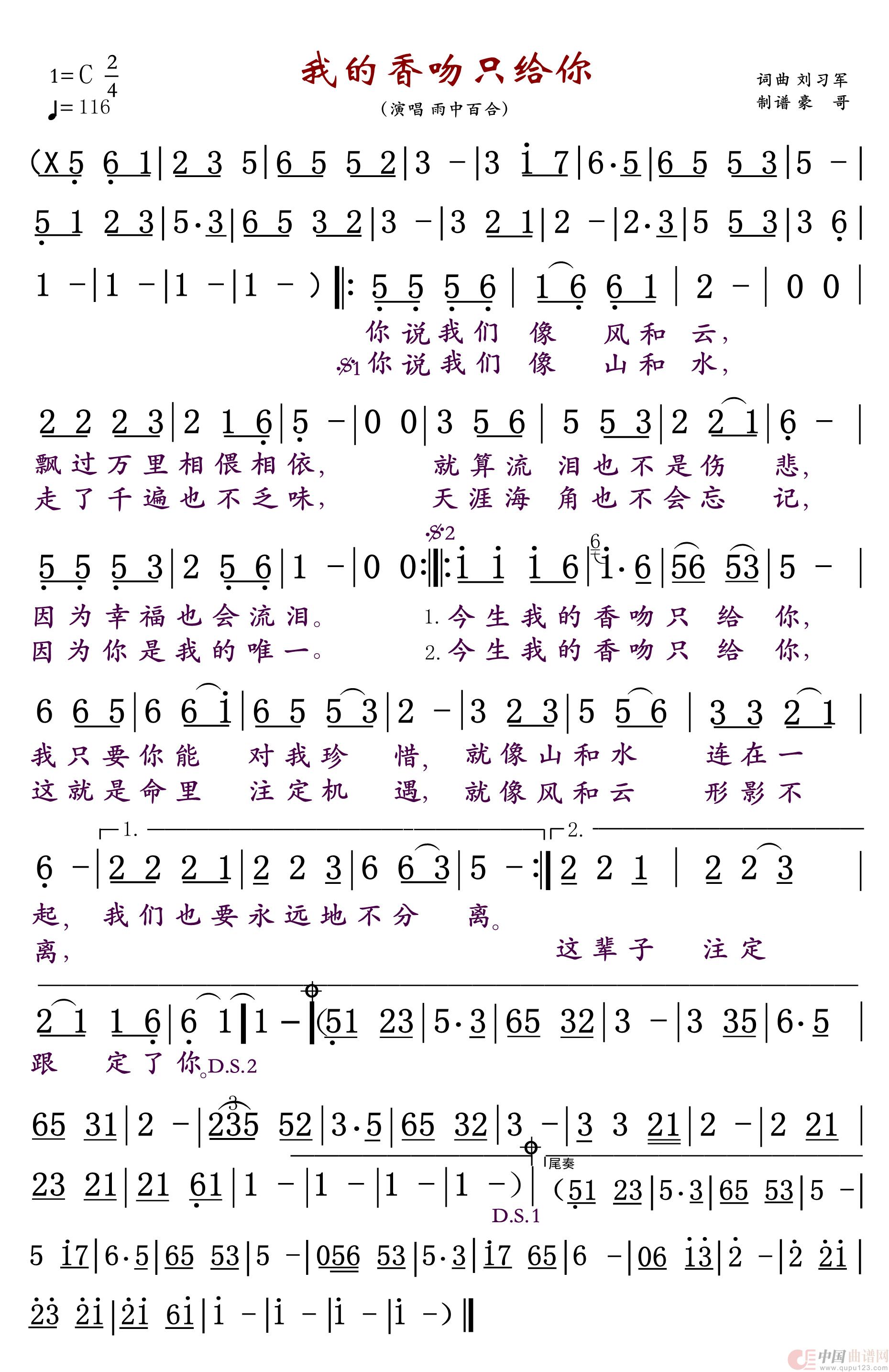 作词:刘习军   作曲:刘习军   演唱(奏):雨中百合   来源:根据全民K歌音乐记谱   上传:豪情满怀@   日期:2022-09-12   浏览次数: