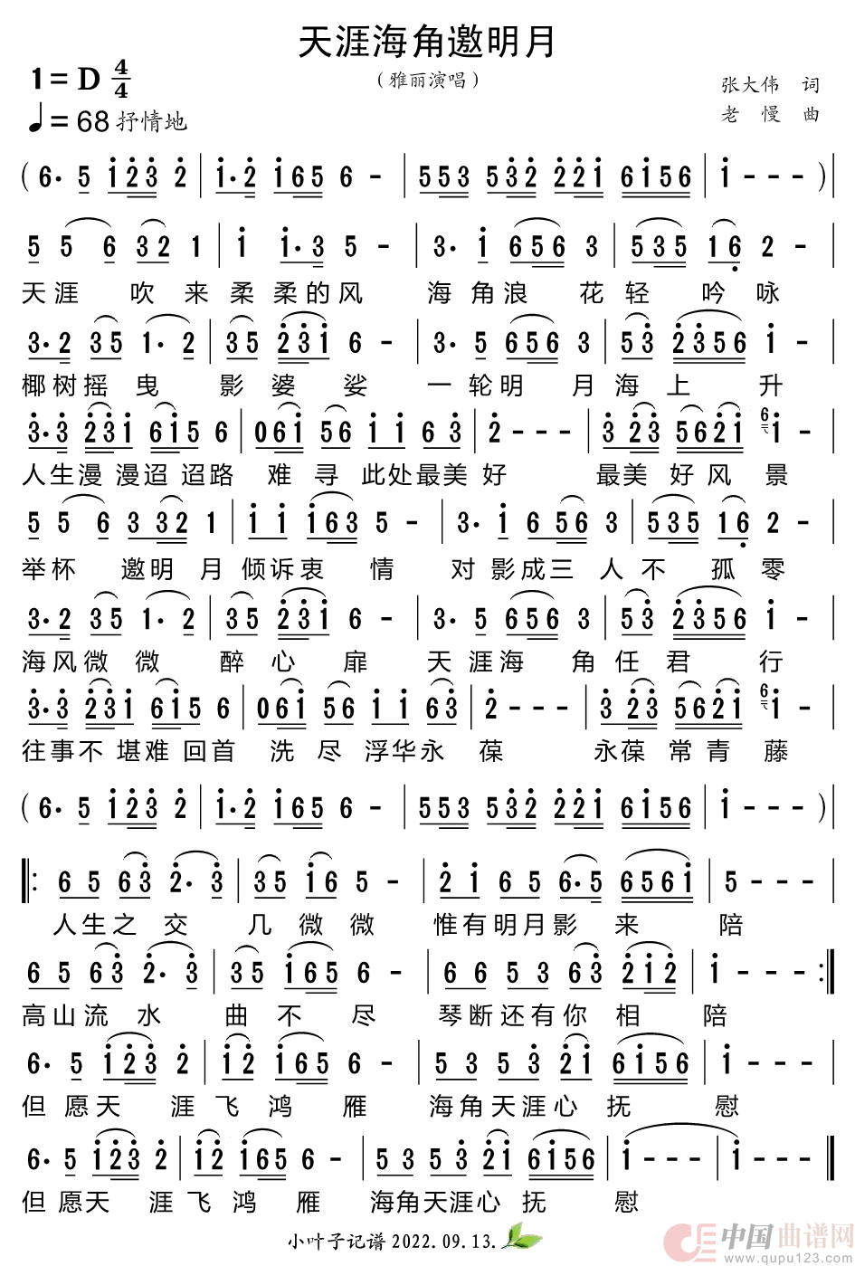 关于《天涯海角邀明月》曲谱的评论