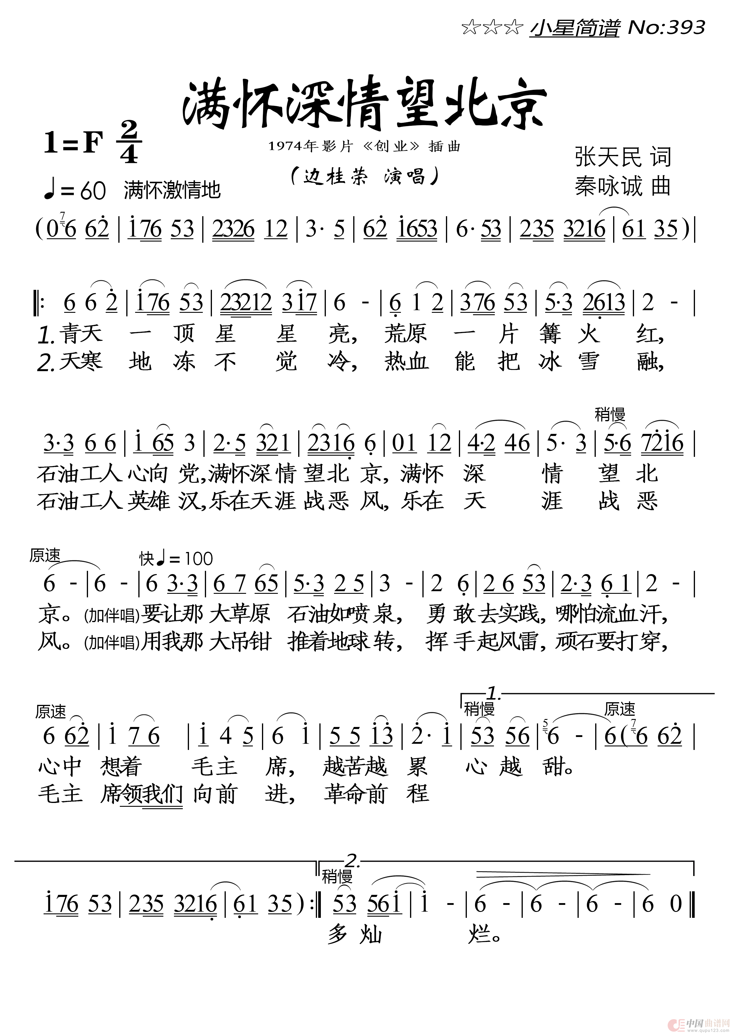 关于《满怀深情望北京》曲谱的评论
