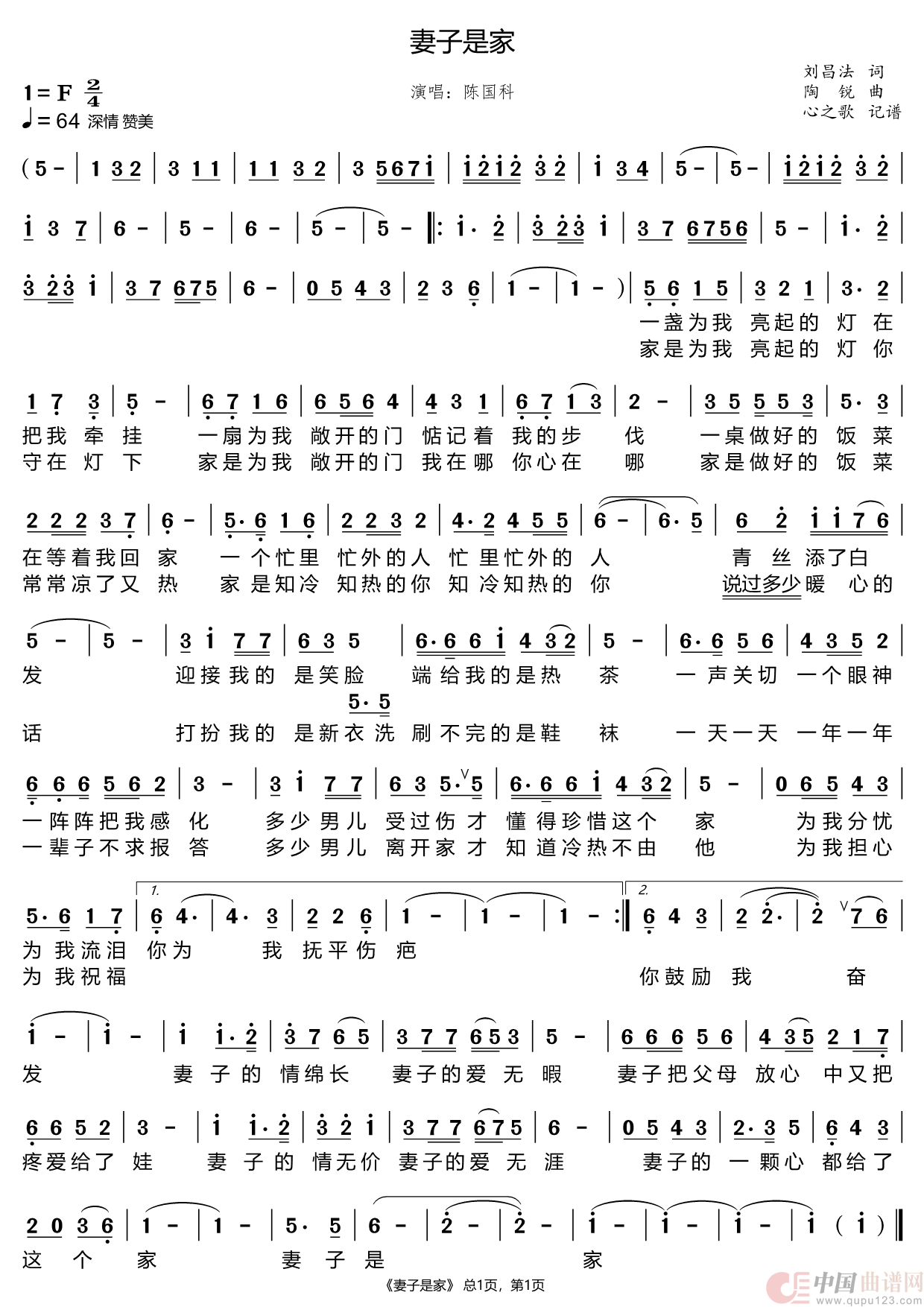 《妻子是家》原创作品 刘昌法作词 陶锐作曲 陈国科演唱 www.ktvc8.com/article/article_924112_1.html 请关注、收藏、点赞、评论、分享!